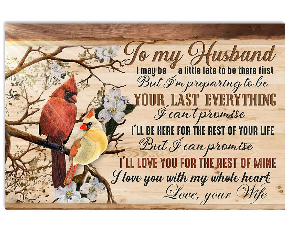 Cardinal Husband Canvas, Gift For Husband, To My Husband I Maybe A Little Late To Be There First Canvas