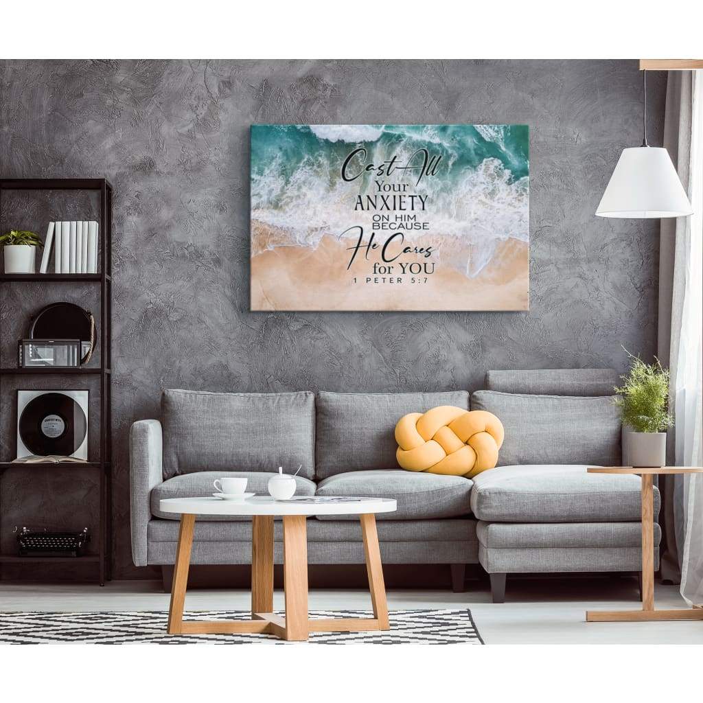 Cast All Your Anxiety On Him Because He Cares For You 1 Peter 5:7 Canvas Wall Art