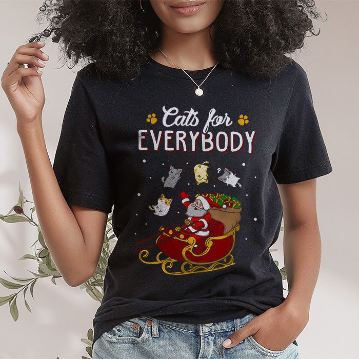Cats For Everybody Christmas Cat Funny Xmas Women Santa T-Shirt