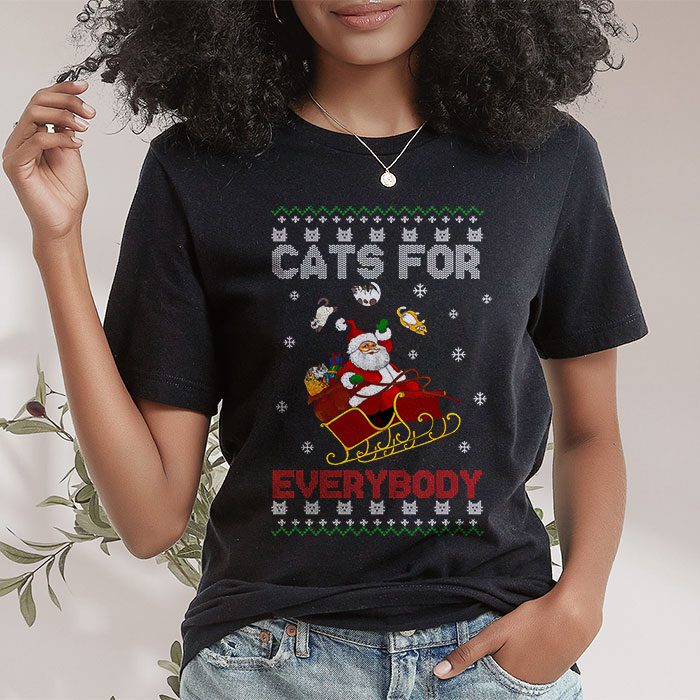Cats For Everybody Christmas Cat Funny Xmas Women Santa T-Shirt