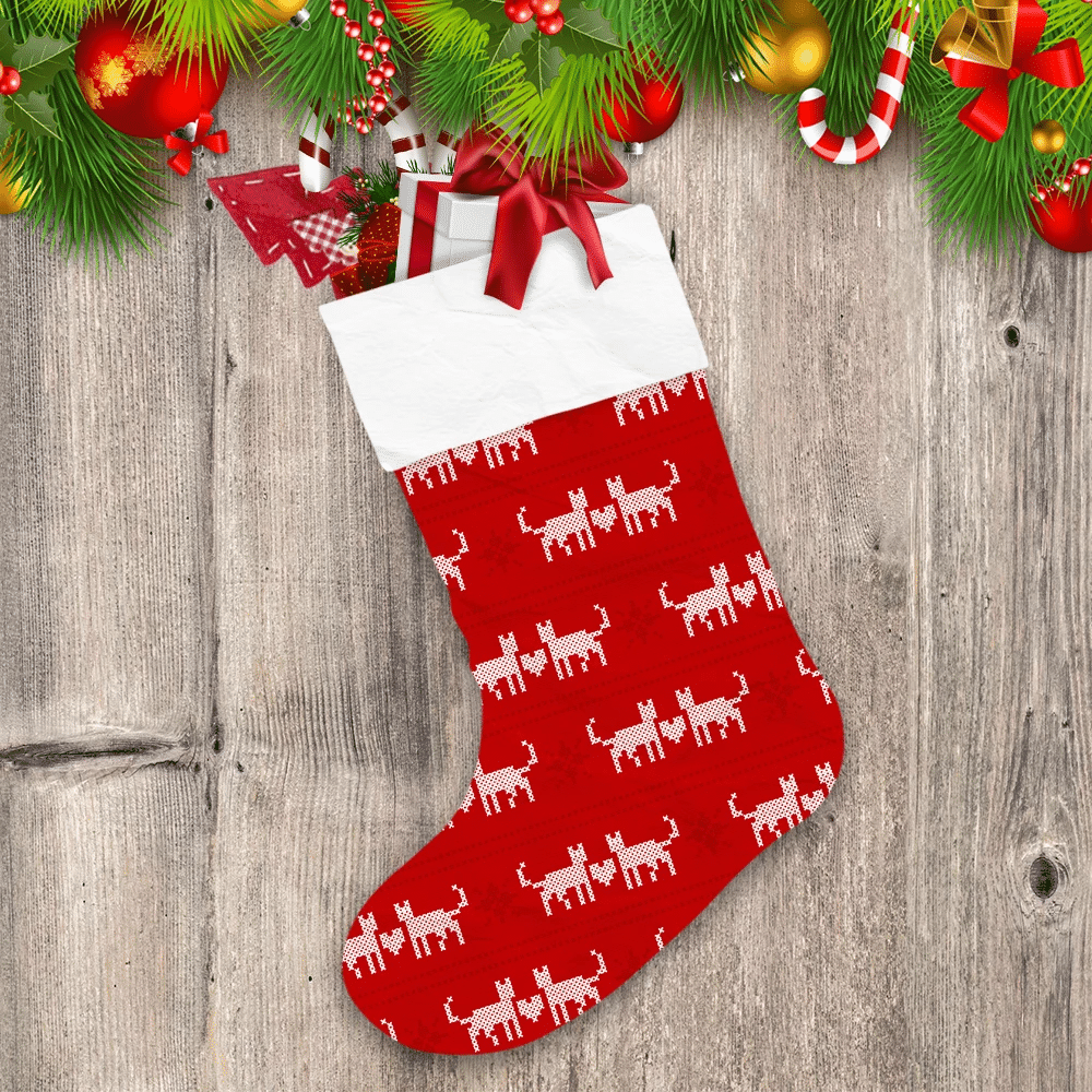 Cats In Love With Snowflakes On A Red Background Christmas Stocking