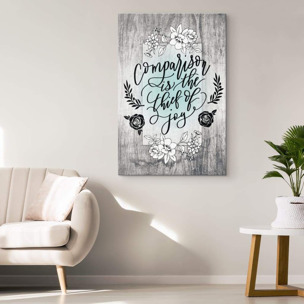 Christian Wall Art: Comparison Is The Thief Of Joy Canvas Wall Art