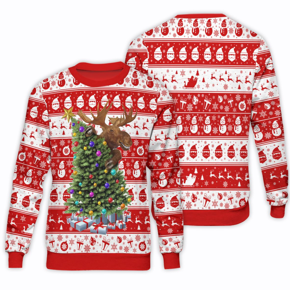 Christmas Tree Reindeer Unisex All Over Print Cotton Sweatshirt, Merry Christmas Cotton Sweatshirt