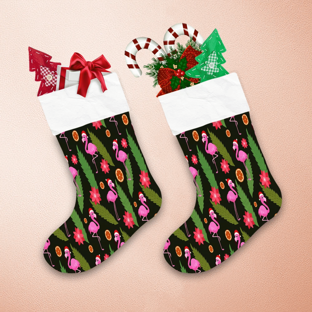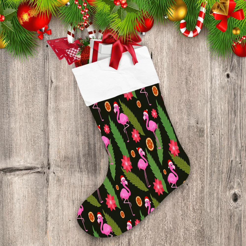Christmas With Flamingo Orange Leaves And Flowers Christmas Stocking