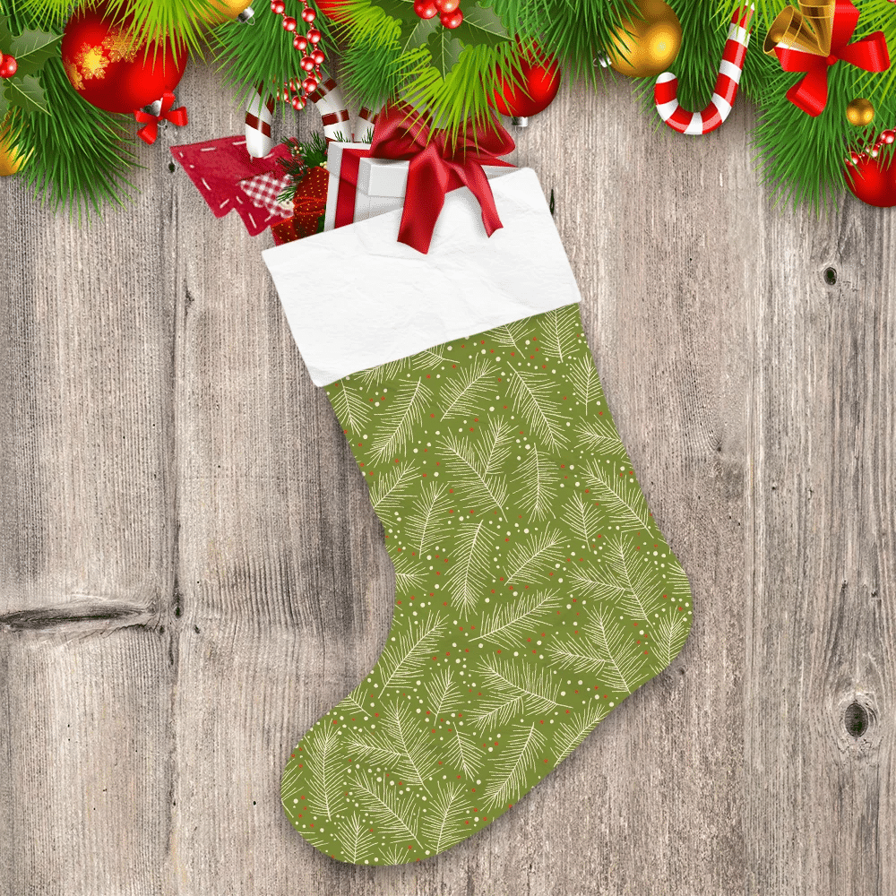 Christmas With Leaves And Pine Branches Christmas Stocking