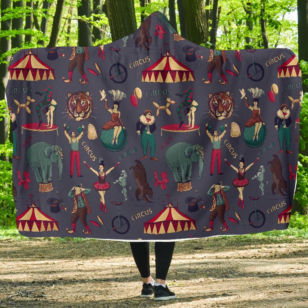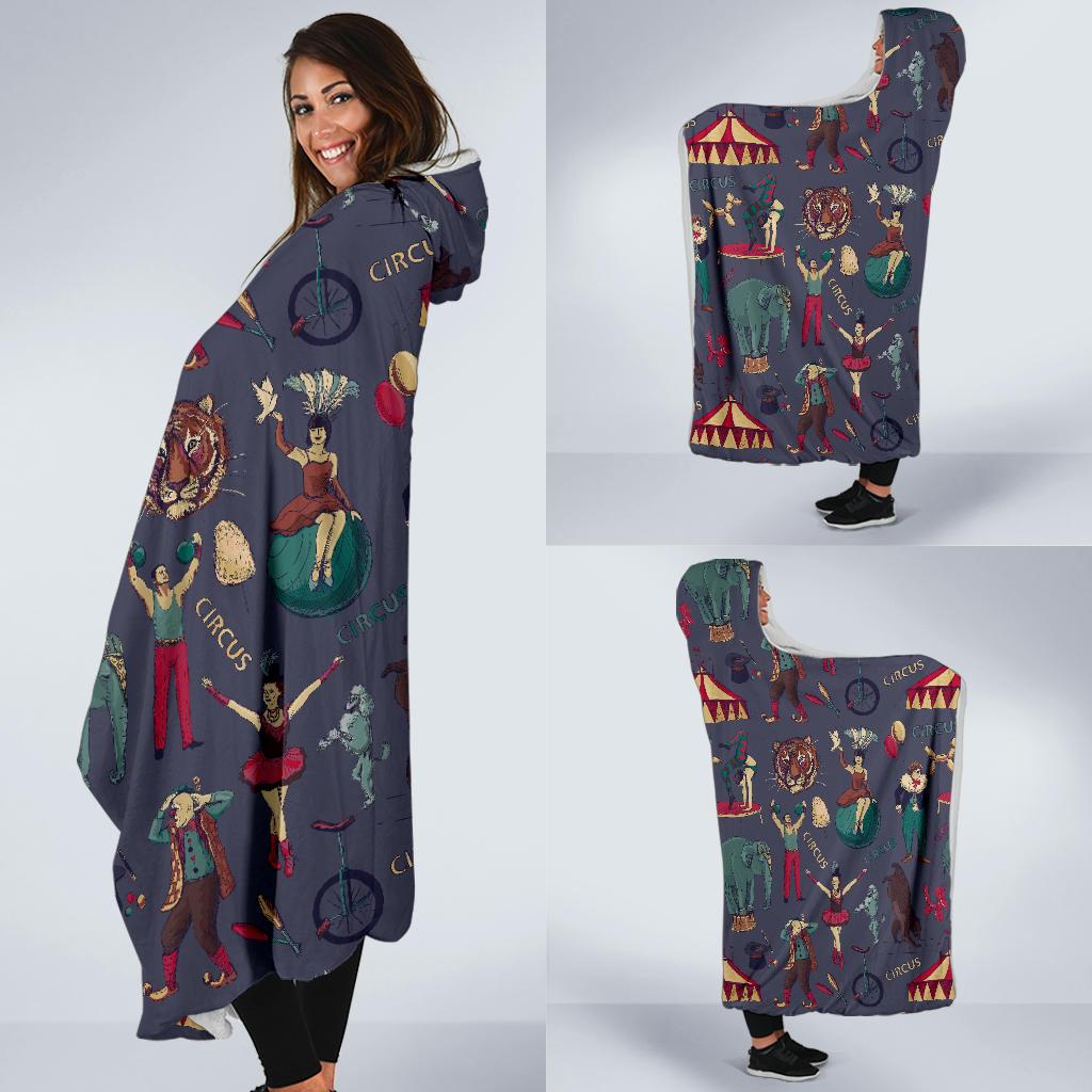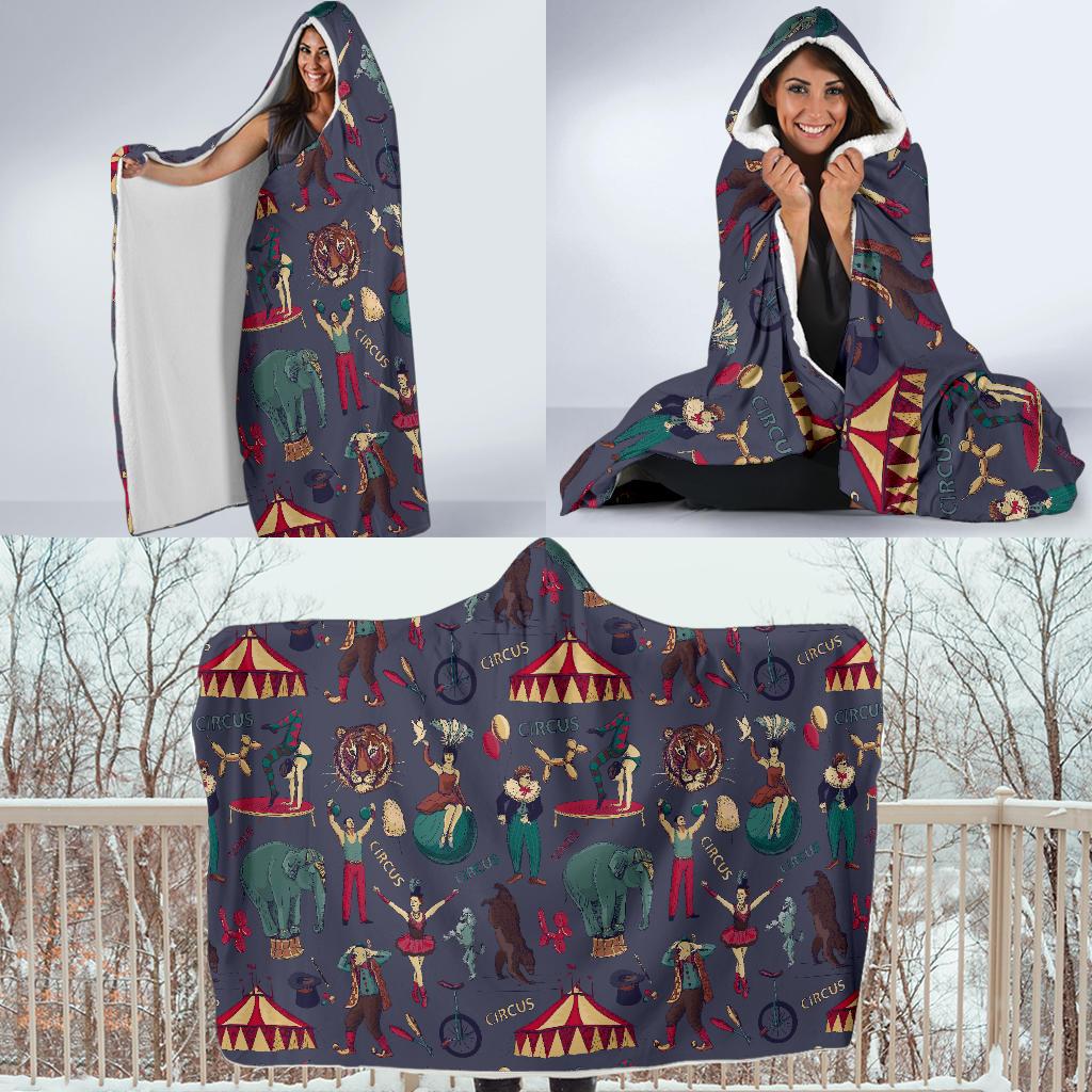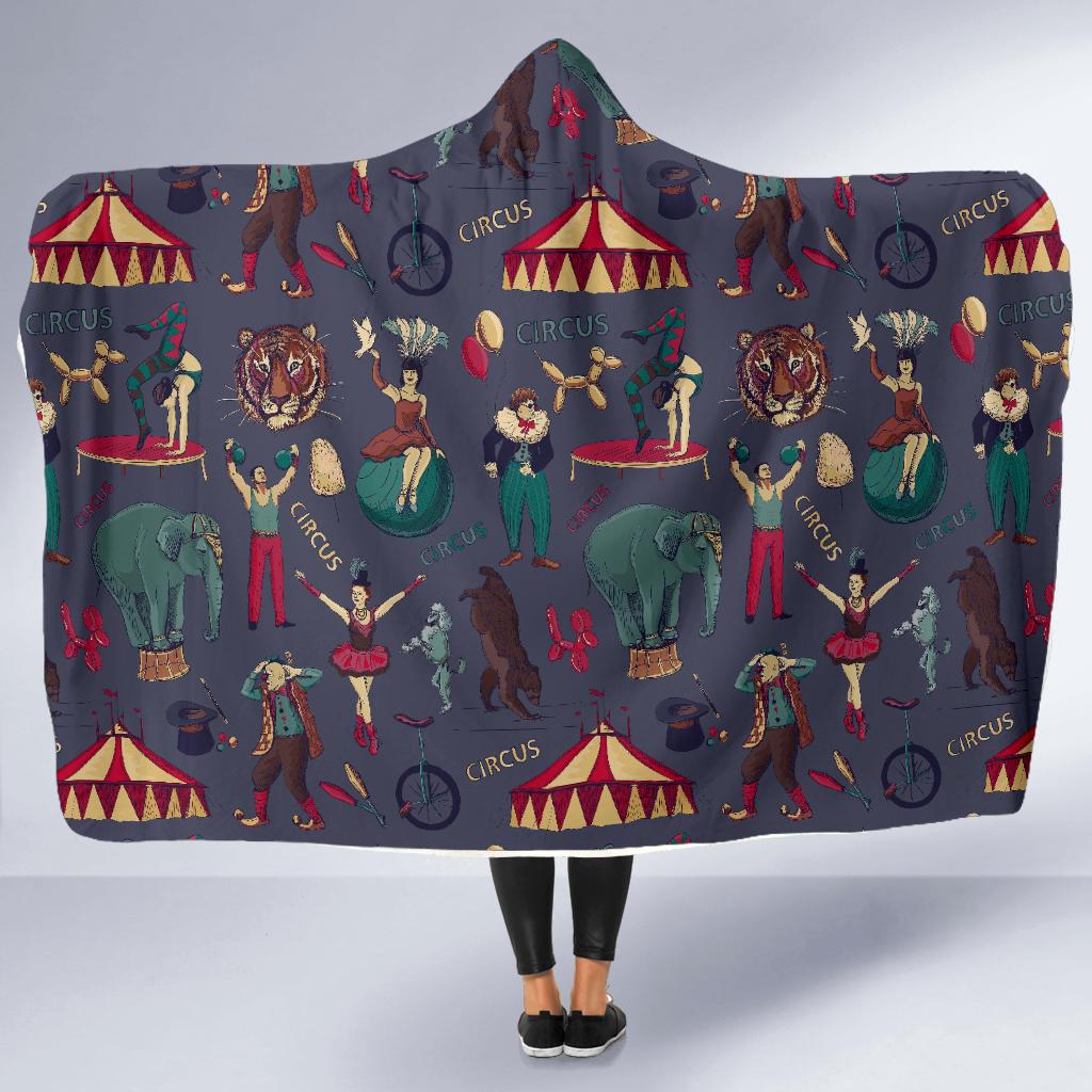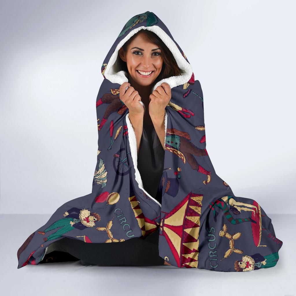 Circus Print Pattern Hooded Blanket Cloak Blanket