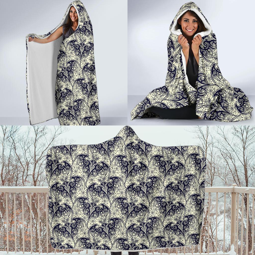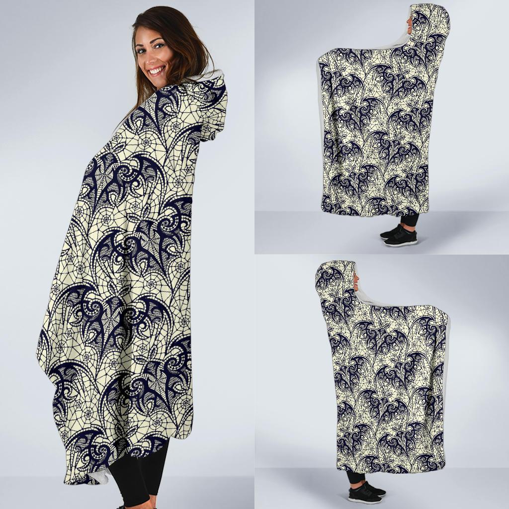 Cobweb Halloween Bat Pattern Print Hooded Blanket Cloak Blanket