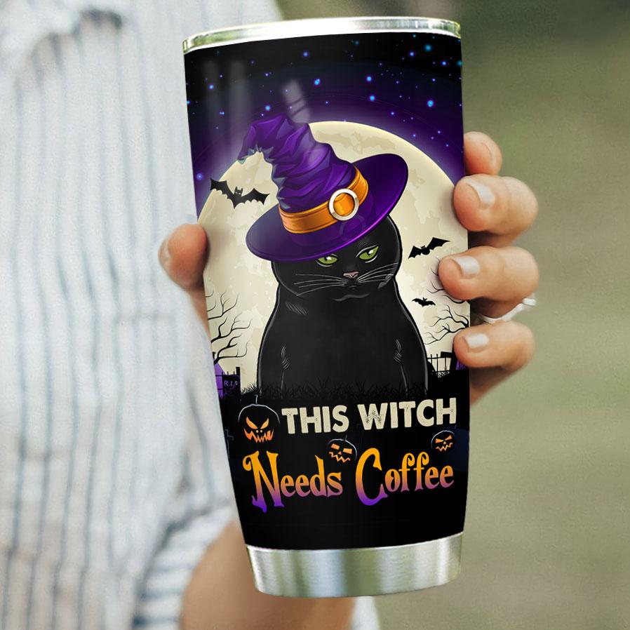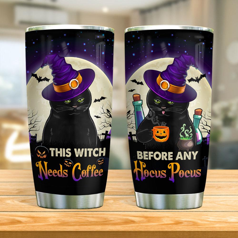 Coffee Cat Witch Halloween Stainless Steel Tumbler