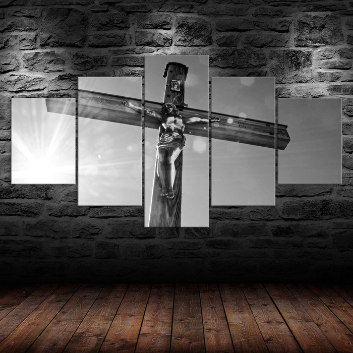 Cross Jesus Christ Religious 5 Piece Five Panel Wall Canvas Print Modern Art Poster Wall Art Decor