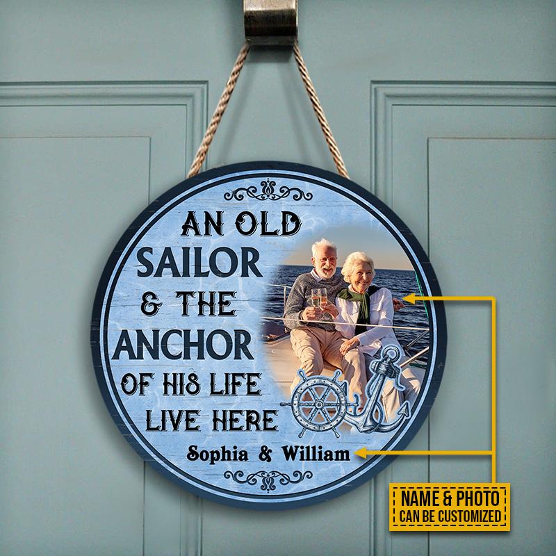 Custom Photo Sailor Old Couple Husband Wife When We Get Photo Gift Custom Wood Circle Sign, Anniversary Wall Decor