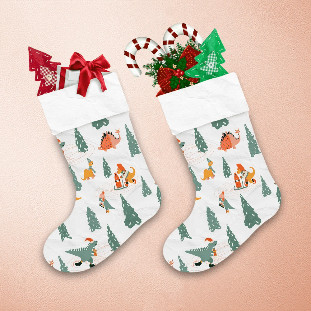 Cute Moments Of Dinosaurs In The Forest Christmas Stocking