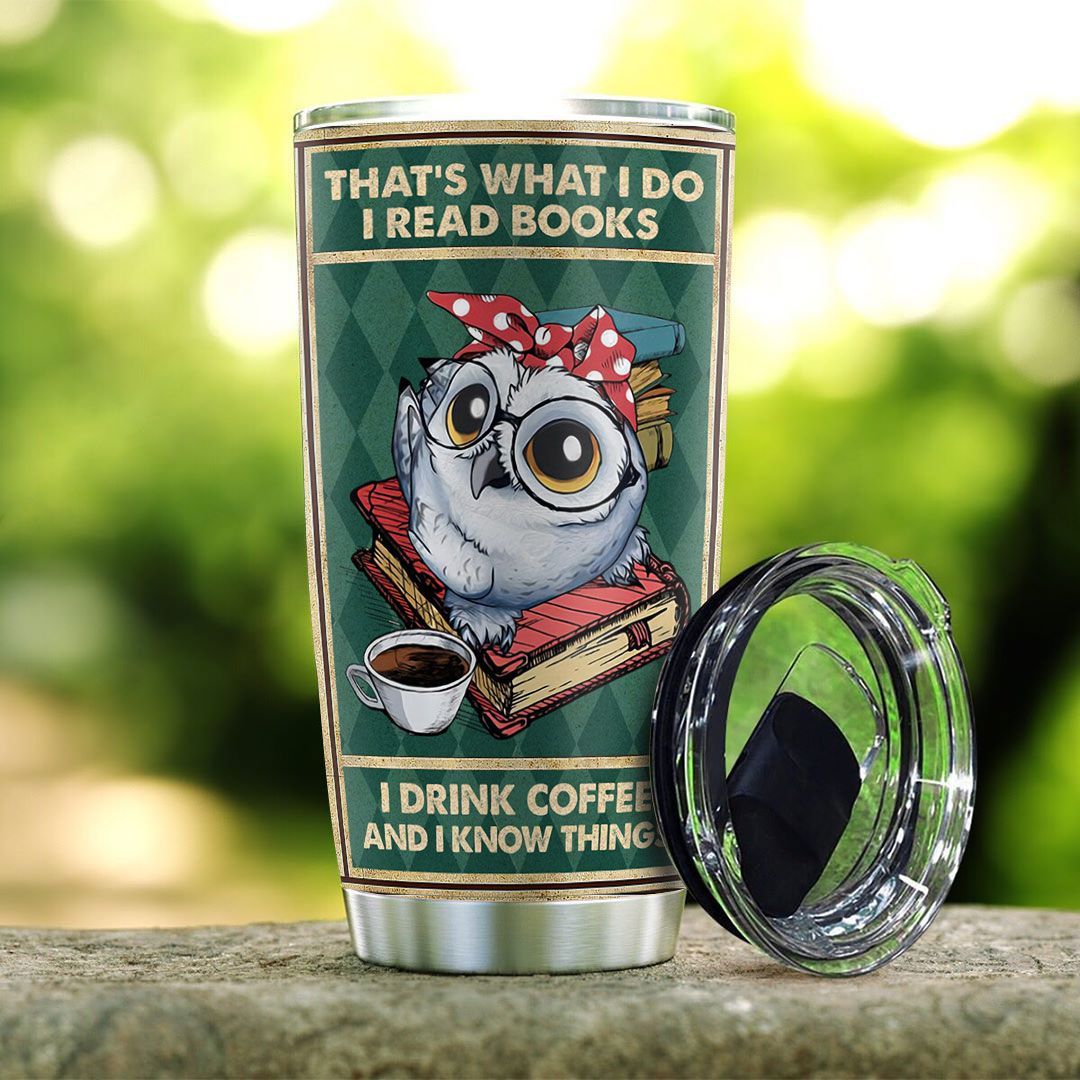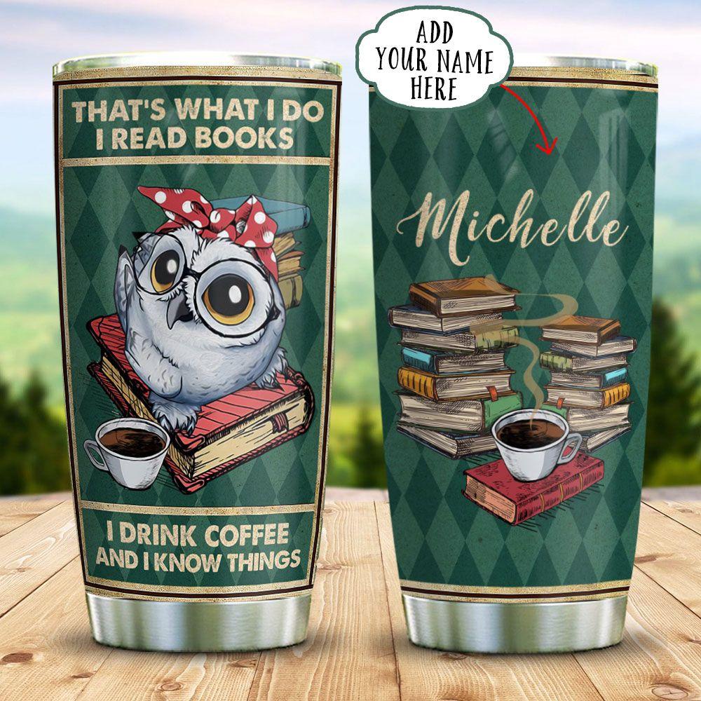 Cute Owl Book Coffee Personalized Stainless Steel Tumbler
