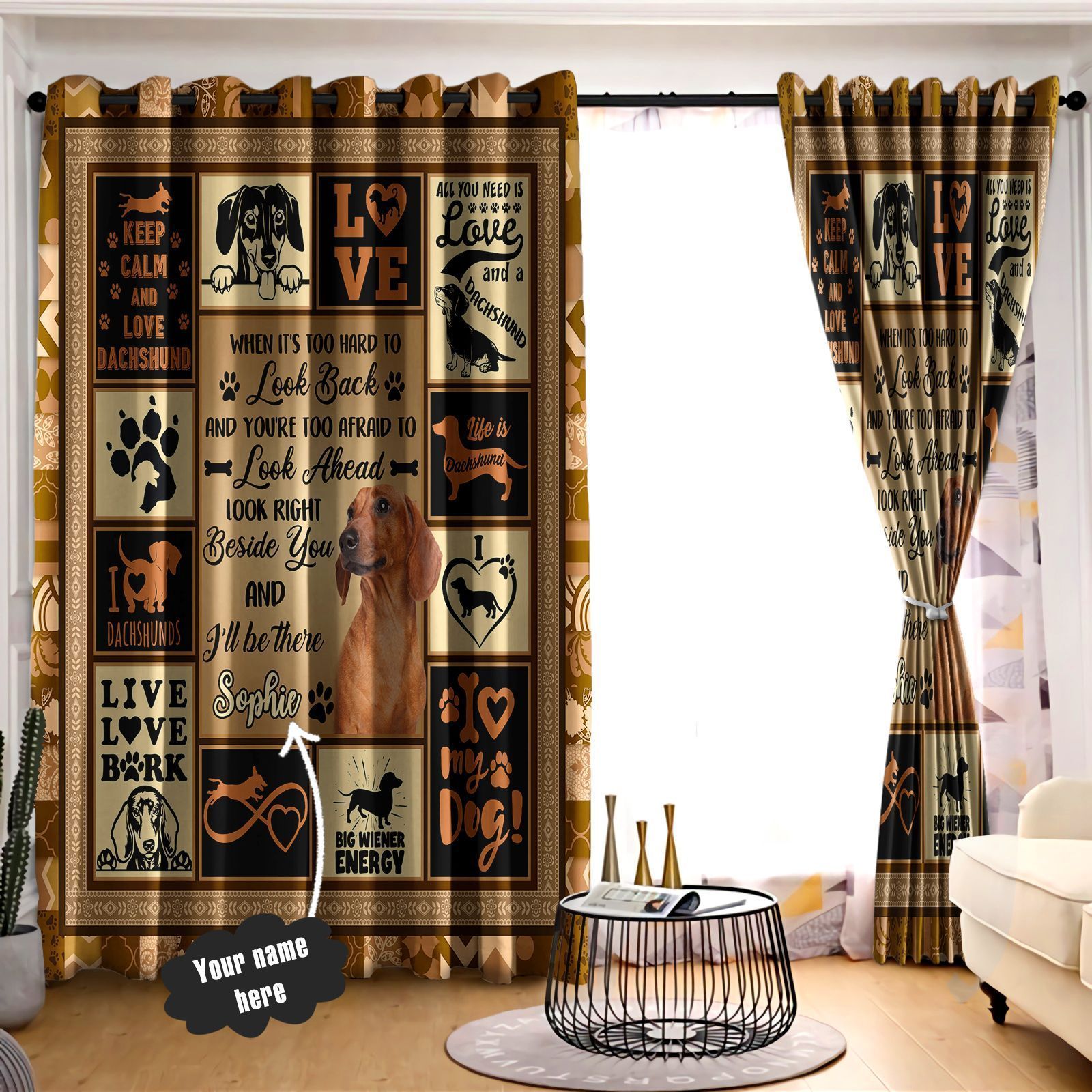 Dachshund Look Beside You Custom Name Gift For Sophia Printed Window Curtain