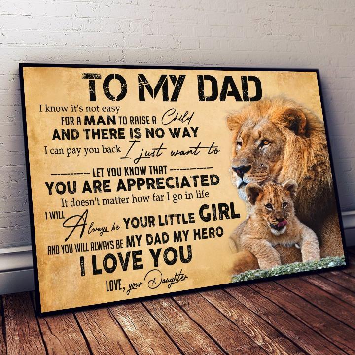 Dad Canvas, Gift For Dad From Daughter, Best Gift For Father’s Day, To My Dad I Know It’s Not Easy For A Man Lion Canvas