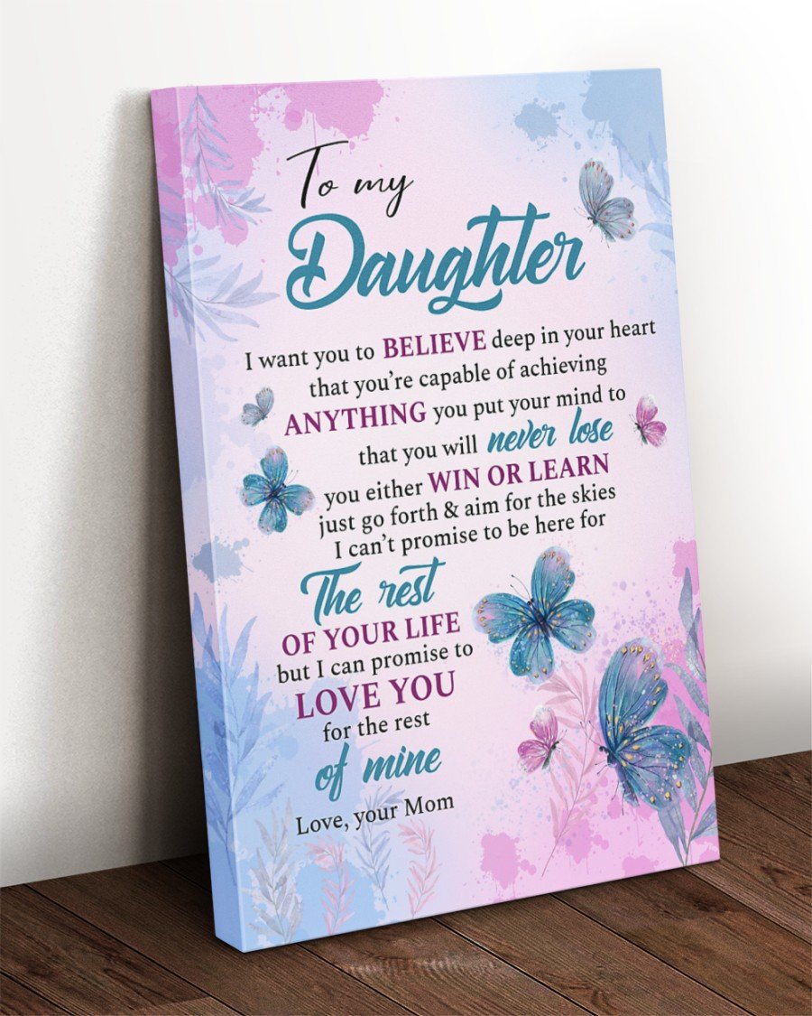Daughter Canvas, Gift For Daughter, To My Daughter I Want You To Believe Deep In Your Heart Butterflies Canvas