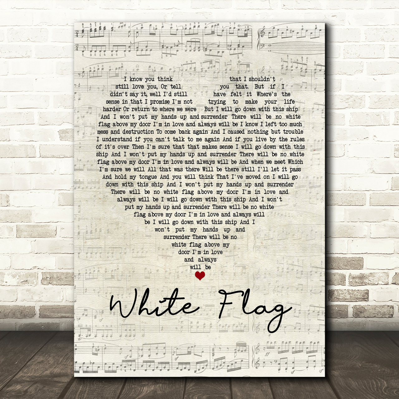 Dido White Flag Script Heart Song Lyric Music Print