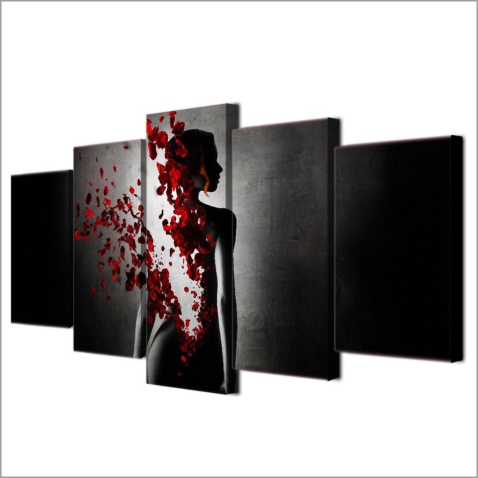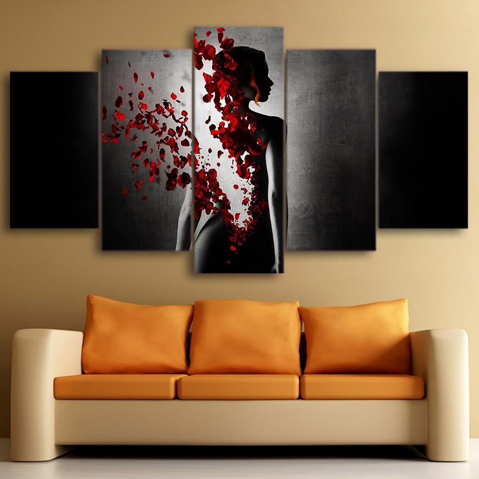 Disappearing Woman Flower – Abstract 5 Panel Canvas Art Wall Decor