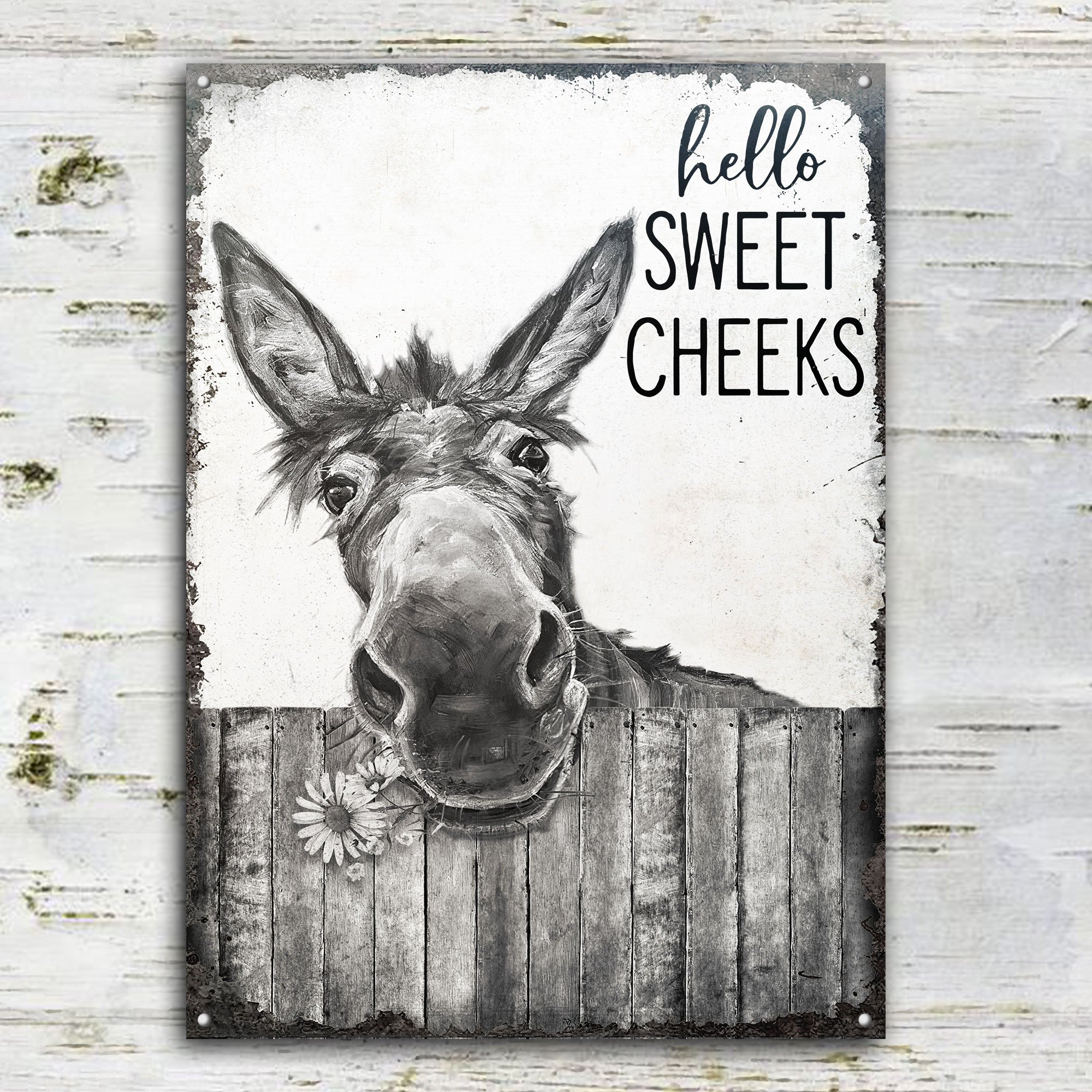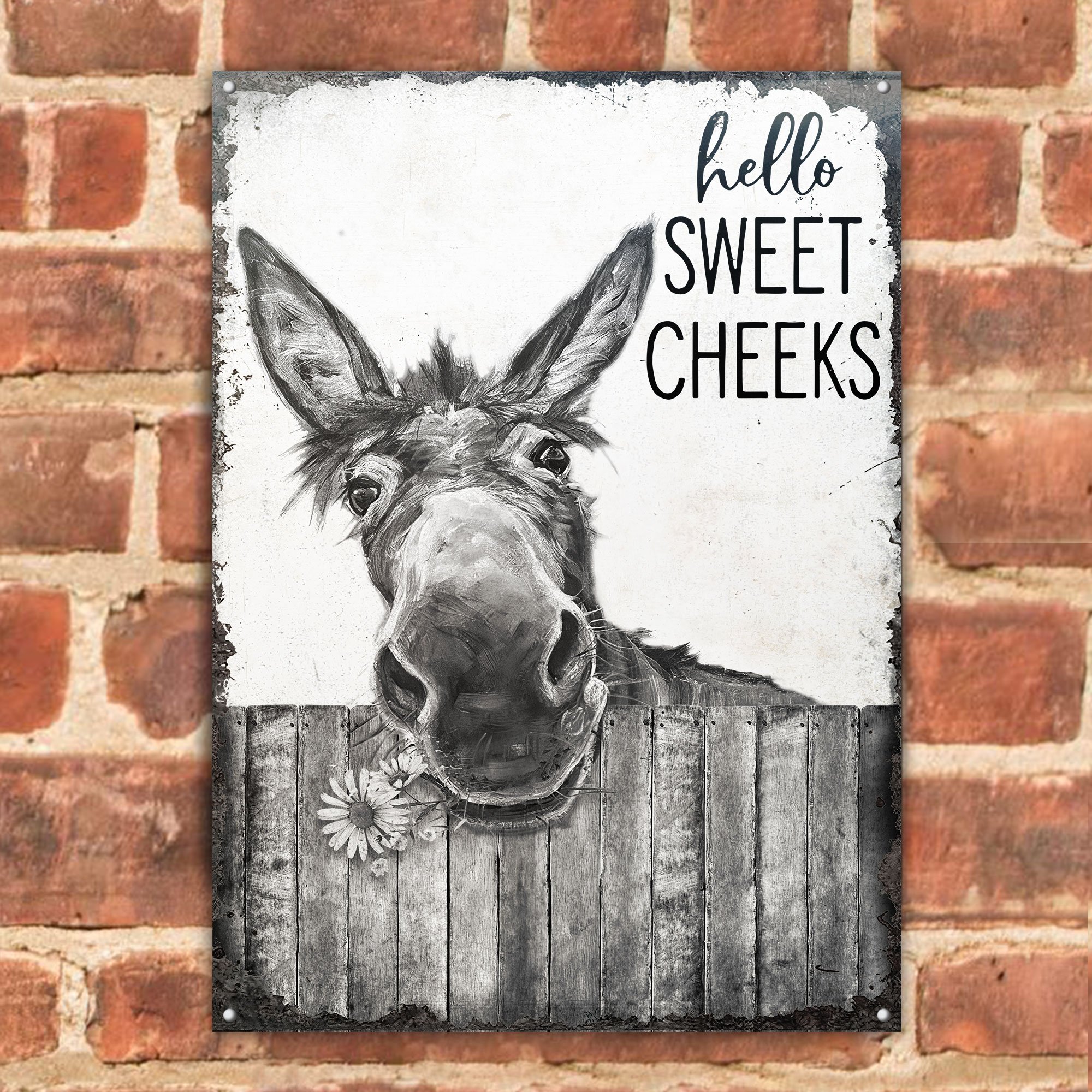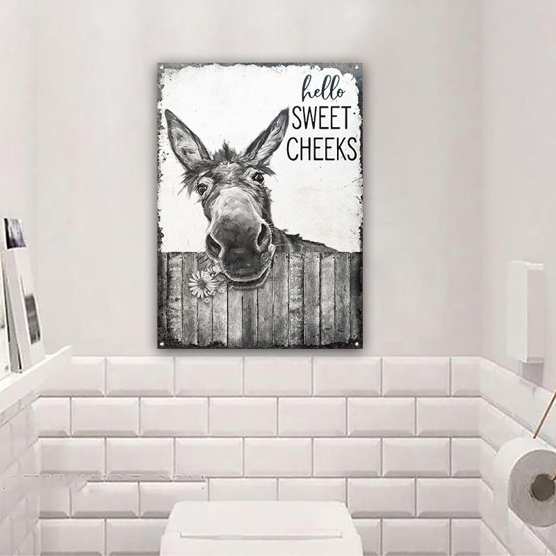 Donkey Black White Hello Sweet Cheeks Customized Classic Metal Signs