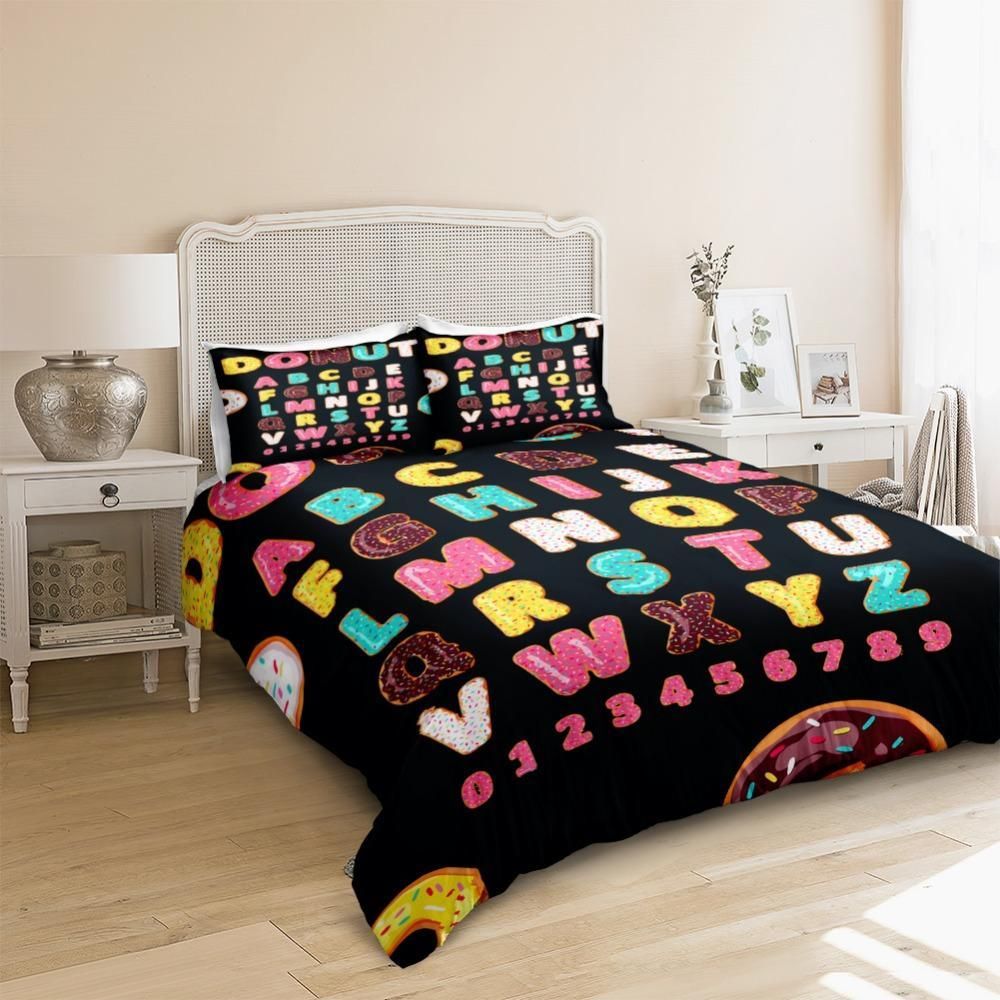 Donut Letters Alphabet Duvet Cover Bedding Set