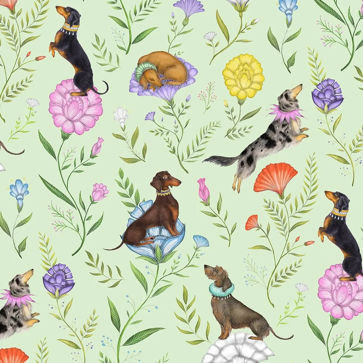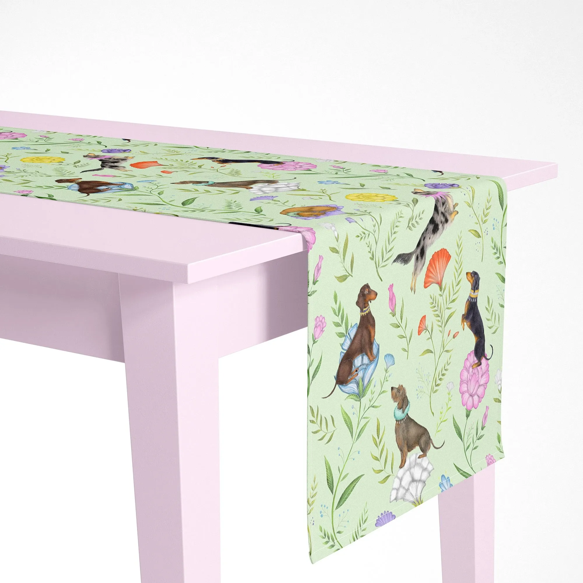 Doxie Day Afternoon Pistachio Luxury Illustration Printed Table Runner
