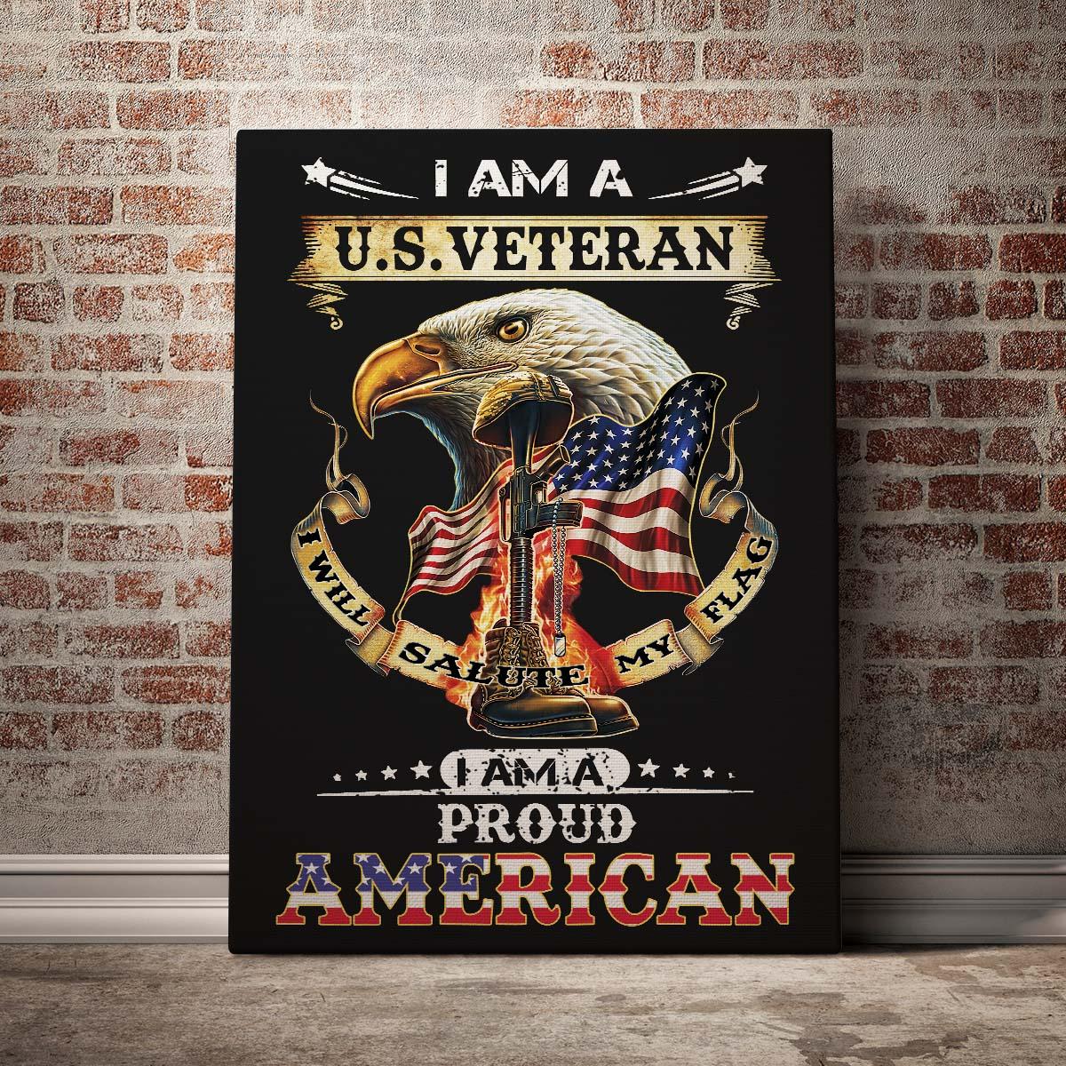 Eagle American Flag Canvas I Am A U.S. Veteran I Am A Proud American Canvas Prints Wall Art Decor