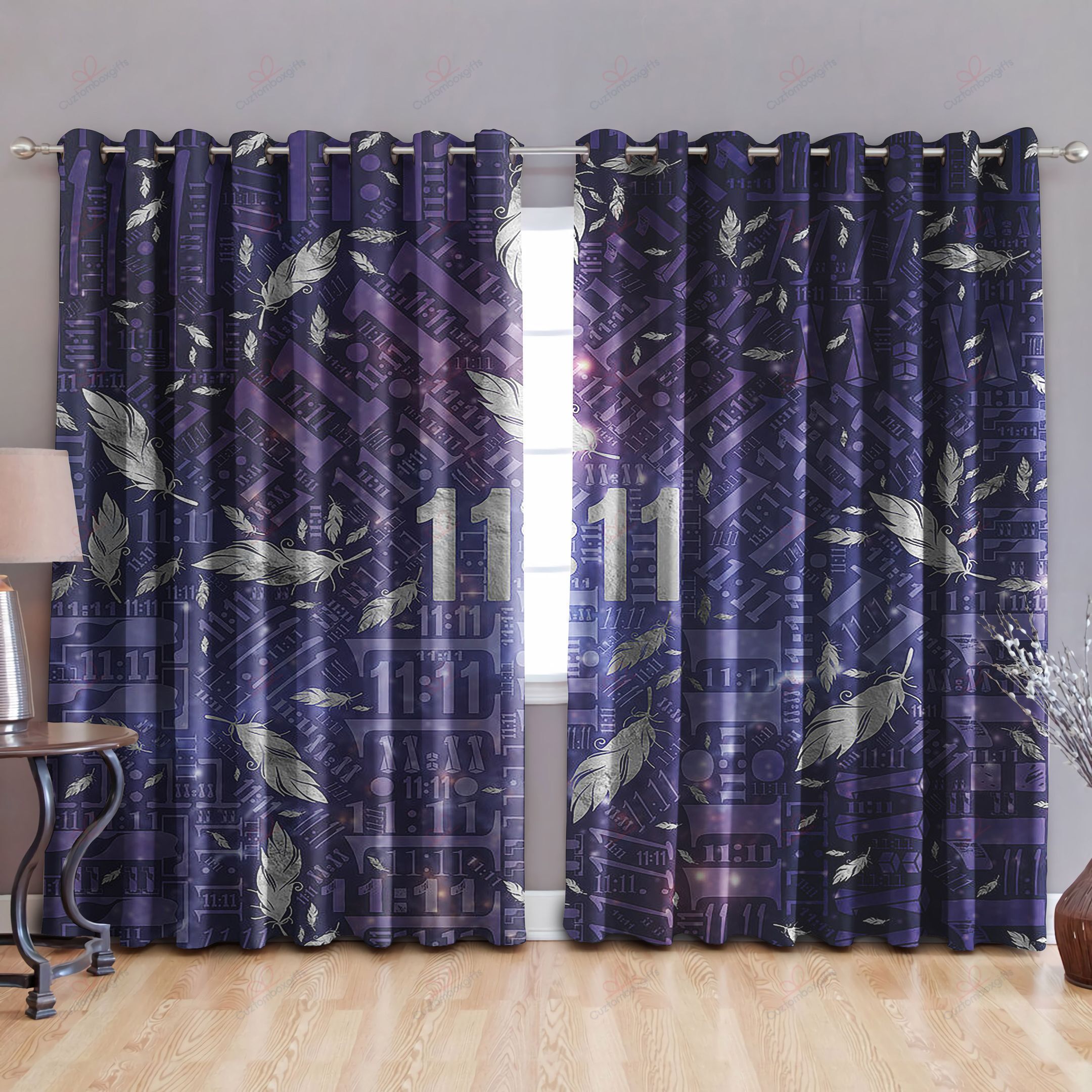 Eleven Numerology Pattern Feather Printed Window Curtain