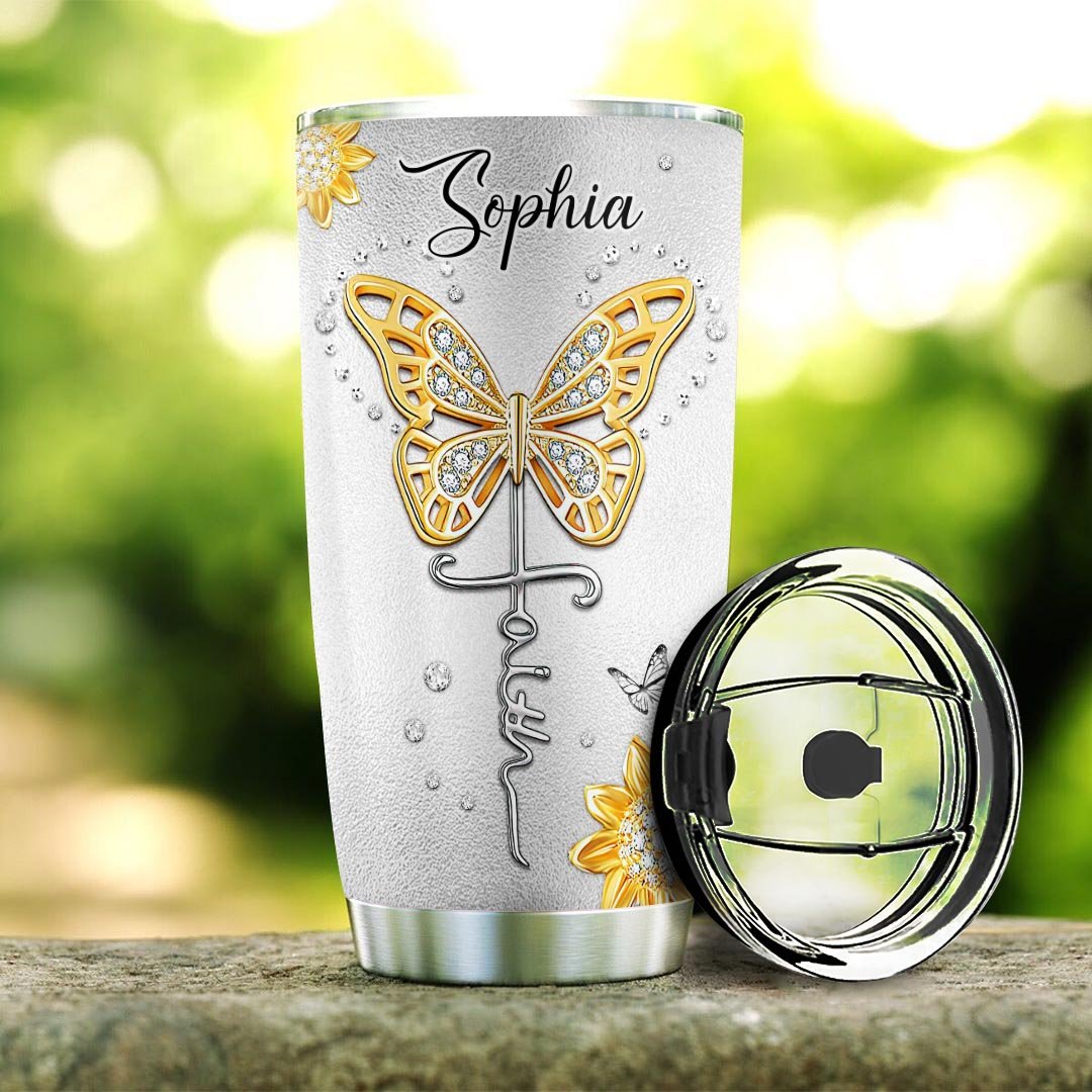 Faith Butterfly Jewelry Style FTH Personalized Stainless Steel Tumbler