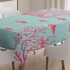 Fishes Coral Reef Aquatic 3D Printed Tablecloth Table Decor