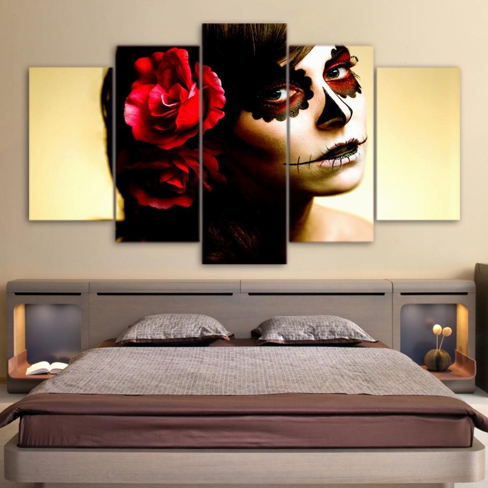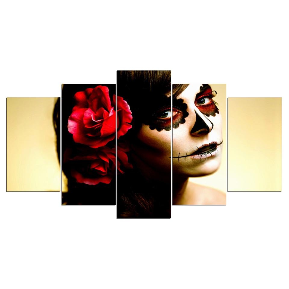 framed dia de os muertos makeup – Abstract 5 Panel Canvas Art Wall Decor