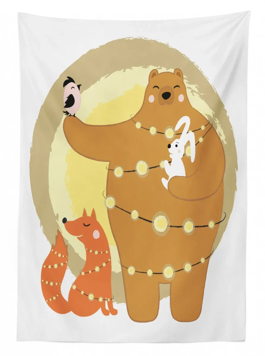 Friends Rabbit Bird Fox 3D Printed Tablecloth Table Decor