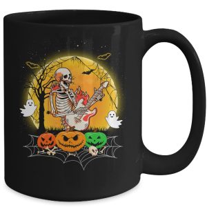 Funny Halloween Funny Skeleton Playing Guitar Pumpkin Boo Ceramic Mug
