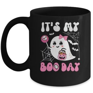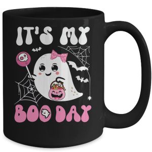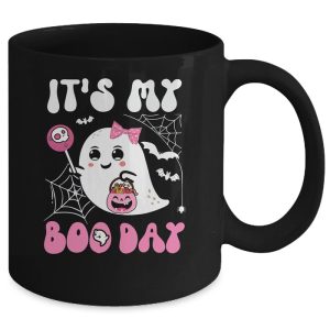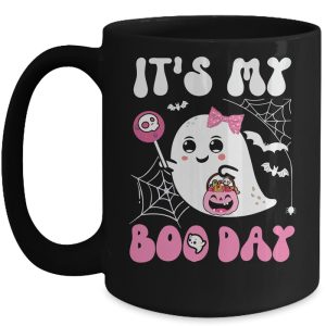 Funny Its My Boo Day Cute Halloween Birthday Ghost Pink Bow Ceramic Mug