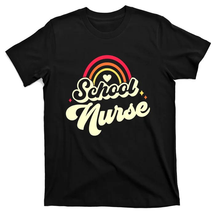 Funny School Nurse Vintage Rainbow Back To School T-Shirt