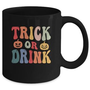 Funny Trick Or Drink Lover Halloween Drink Retro Groovy Ceramic Mug