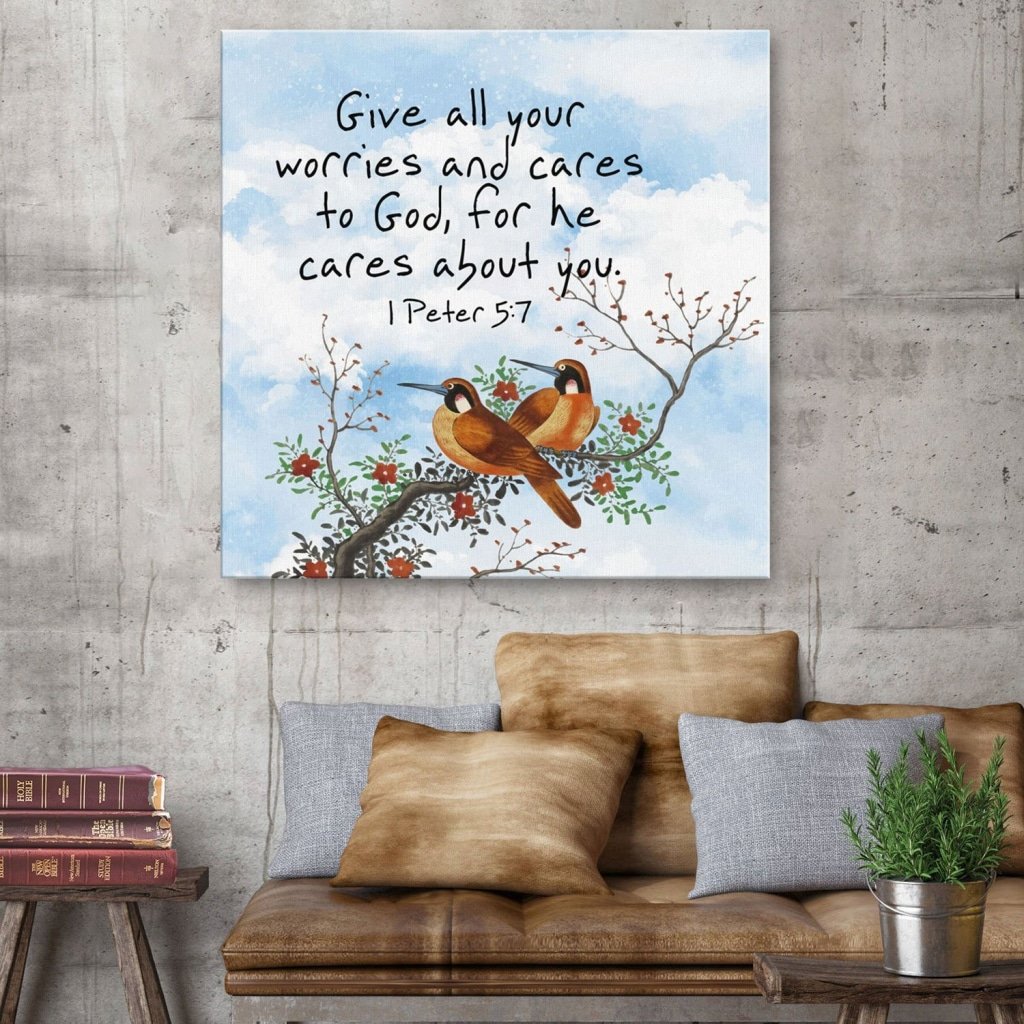 Give All Your Worries And Cares To God, For He Cares About You 1 Peter 5:7 Canvas Wall Art