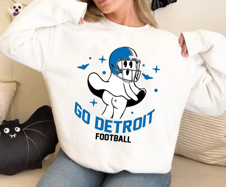 Go Detroit Football Funny Ghost Comfort Sweatshirt Football Retro Comfort Sweatshirt Football Mom Shirt ECS1078