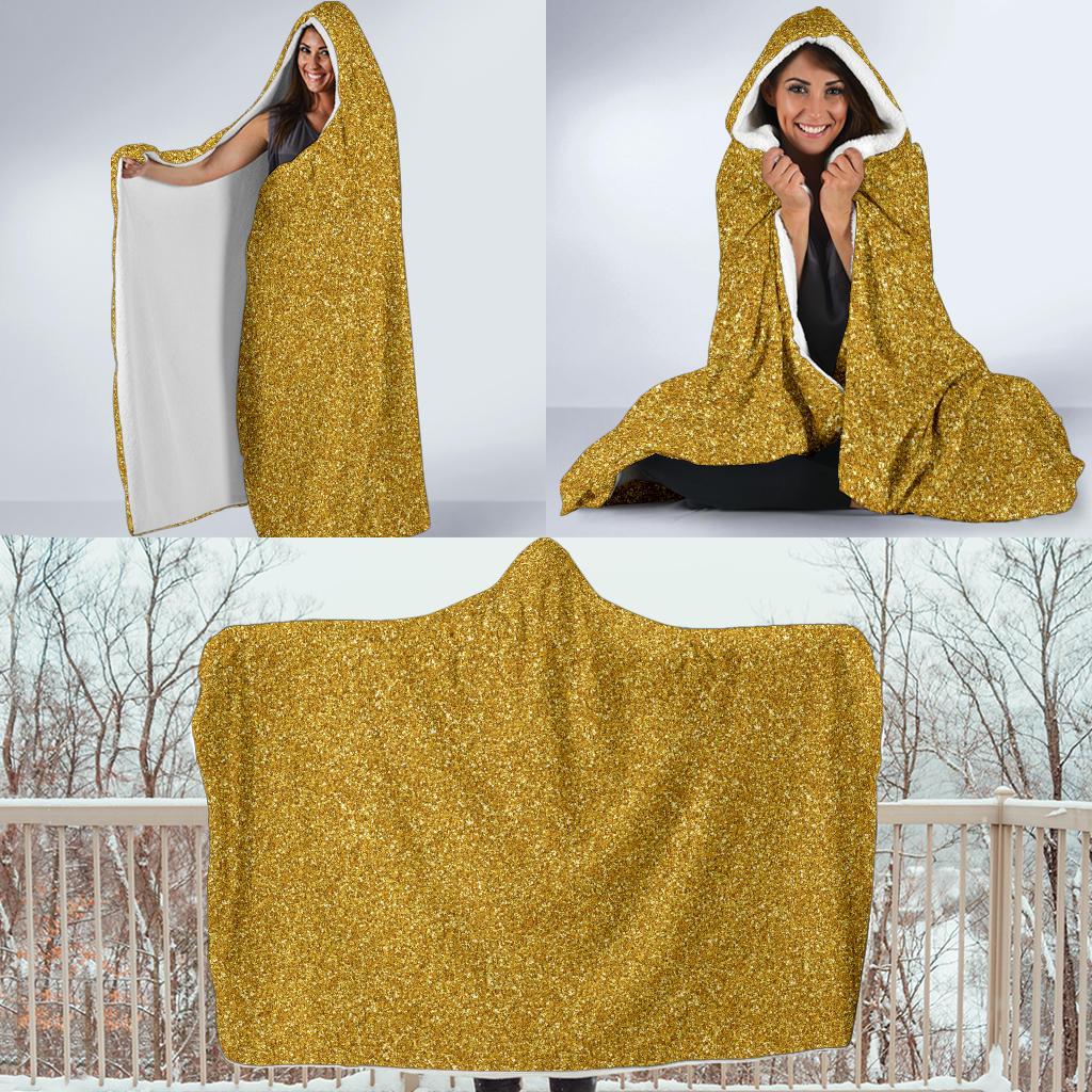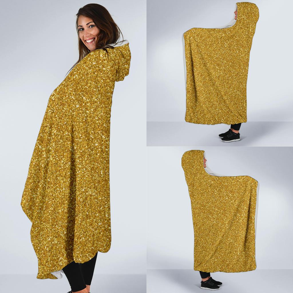 Gold Glitter Star Print Pattern Hooded Blanket Cloak Blanket