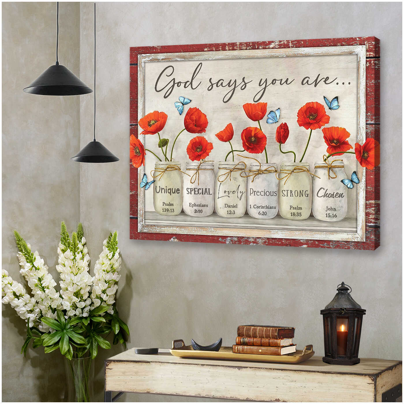 Gorgeous Poppies Mason And Butterflies God Says You Are Canvas Prints Wall Art Decor
