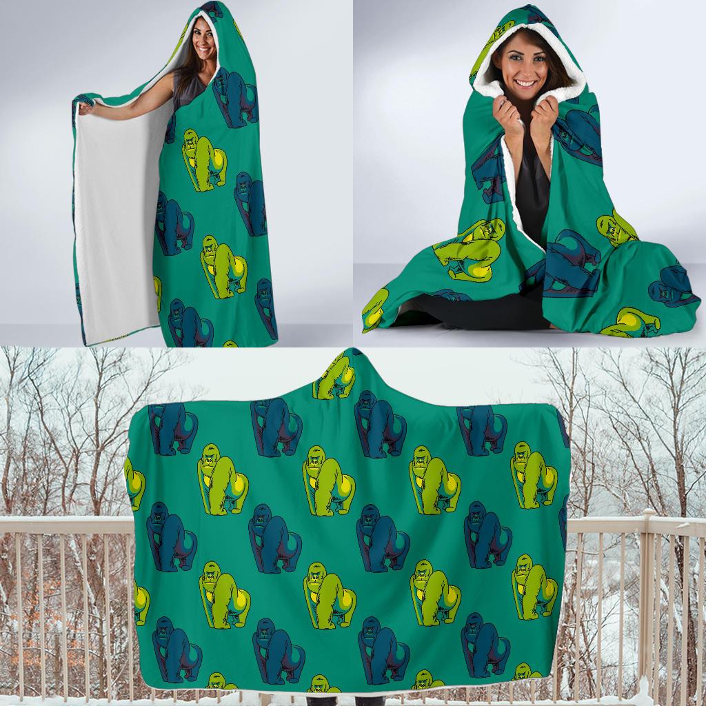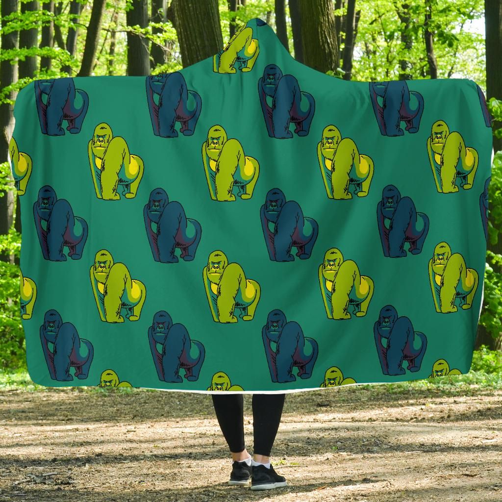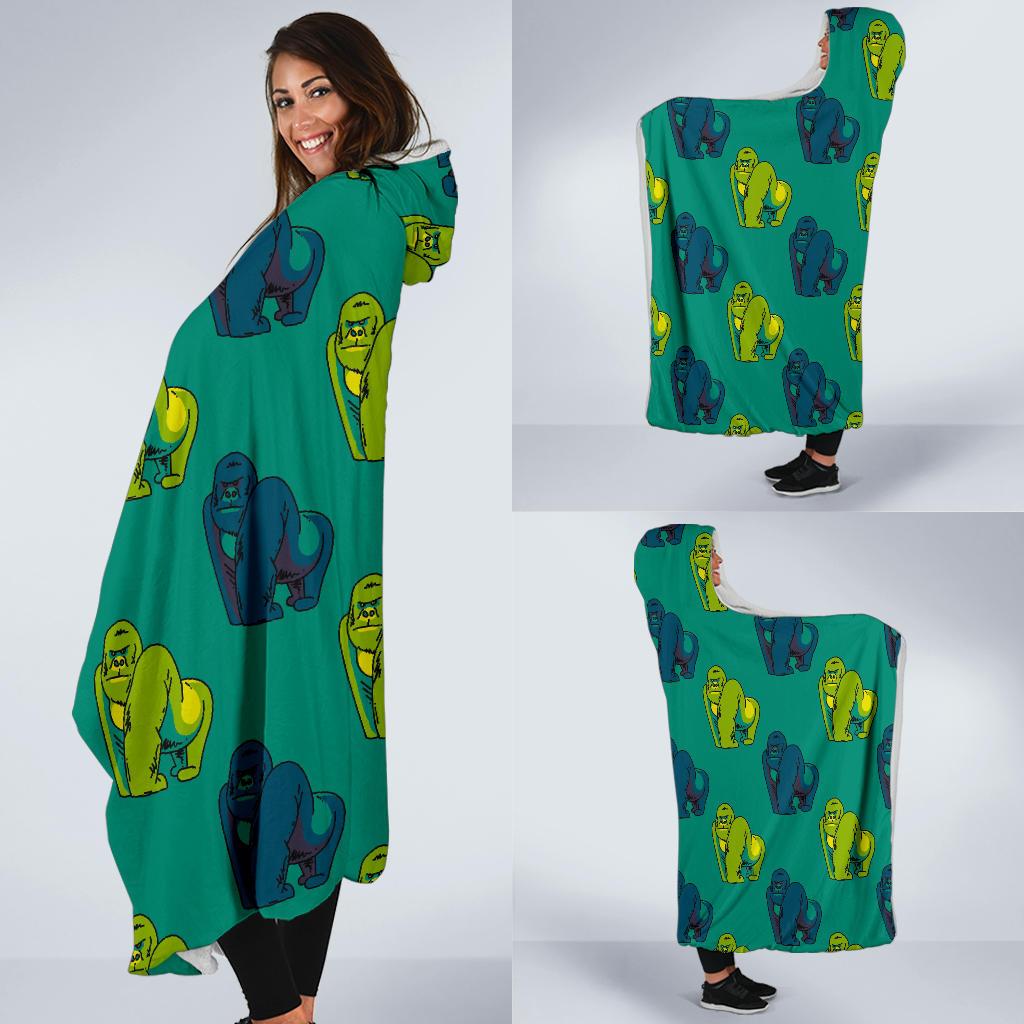 Gorilla Print Pattern Hooded Blanket Cloak Blanket
