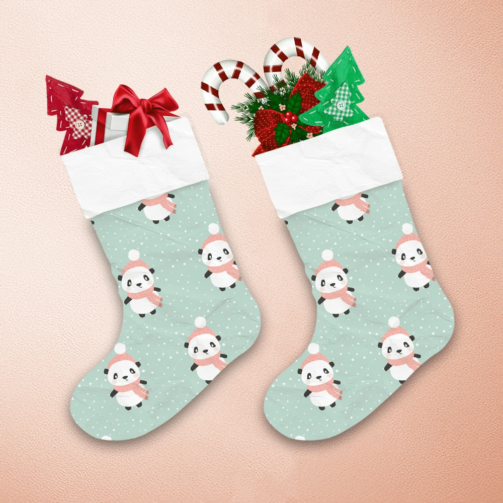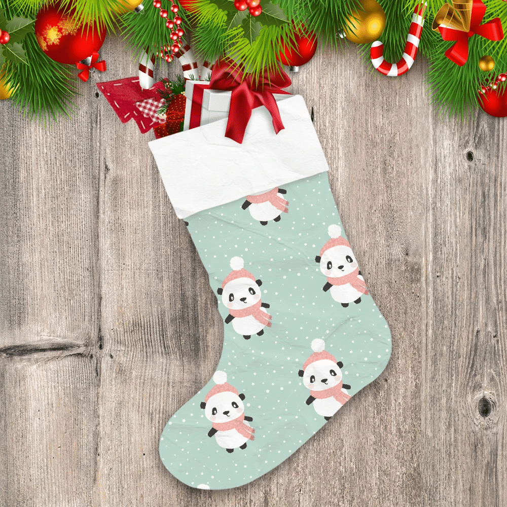 Happy Cartoon Panda With Pink Scarf In Snow On Christmas Holiday Christmas Stocking