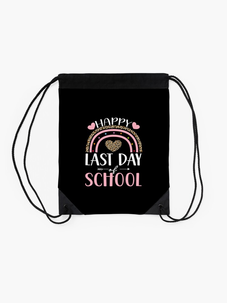 Happy Last Day Of School Hello Summer Students And Teachers Rainbow Drawstring Bag DSB1340