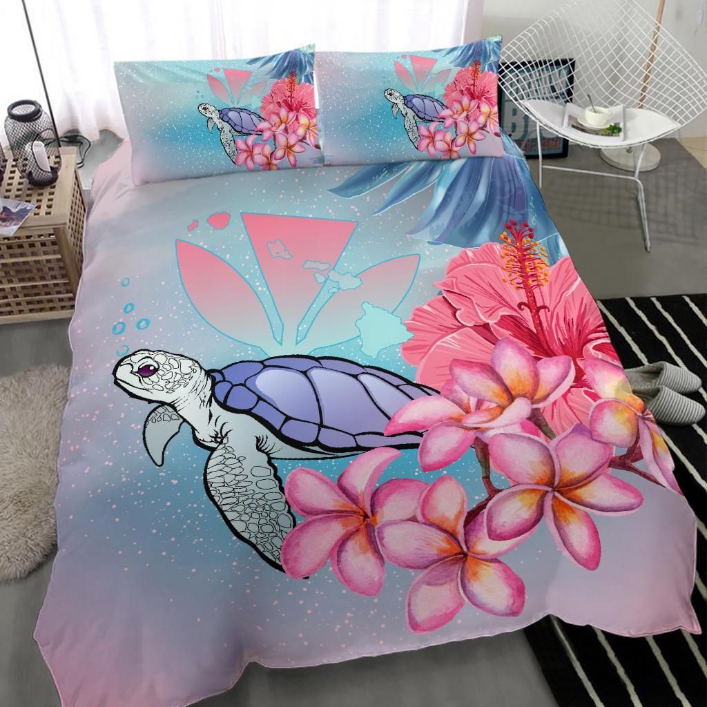 Hawaii Map Kanaka Turtle Galaxy Night Plumeria Hibiscus Duvet Cover Bedding Set
