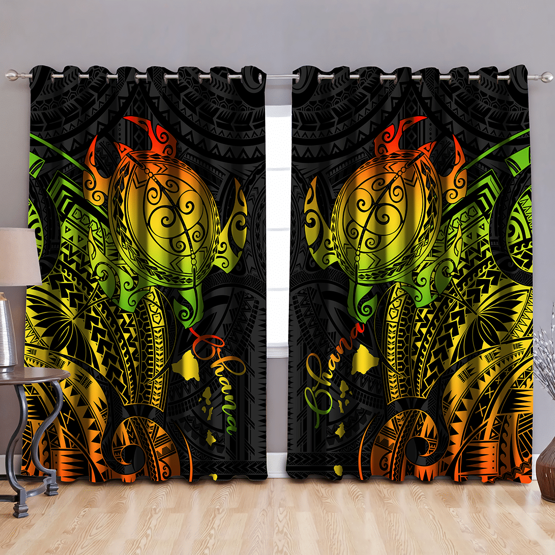 Hawaiian Ohana Reggae Turtle Printed Window Curtain