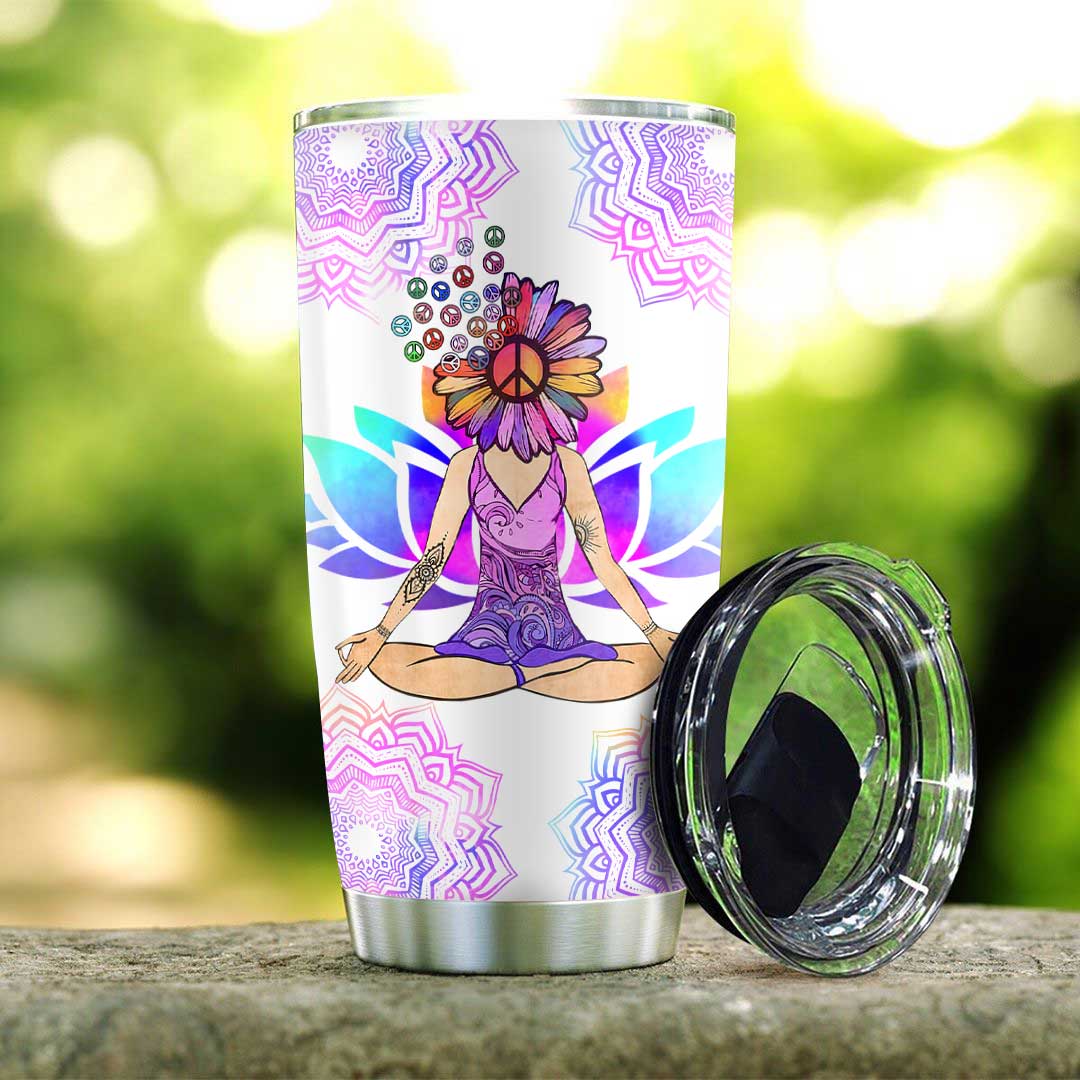 Hologram Flower Hippie Girl Peace Love Stainless Steel Tumbler
