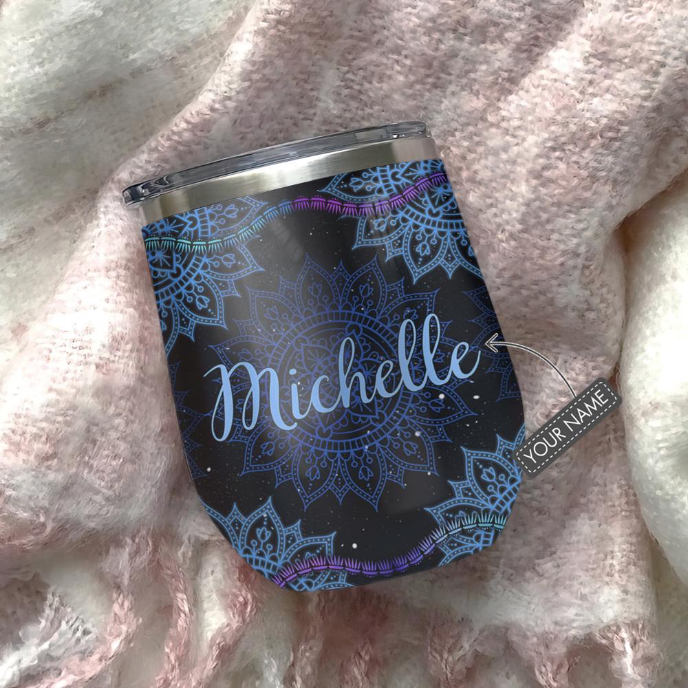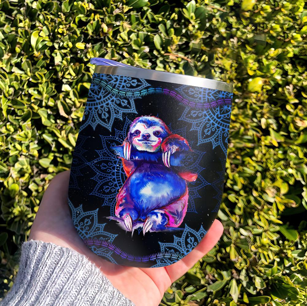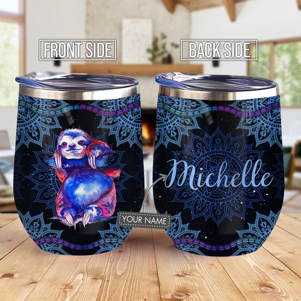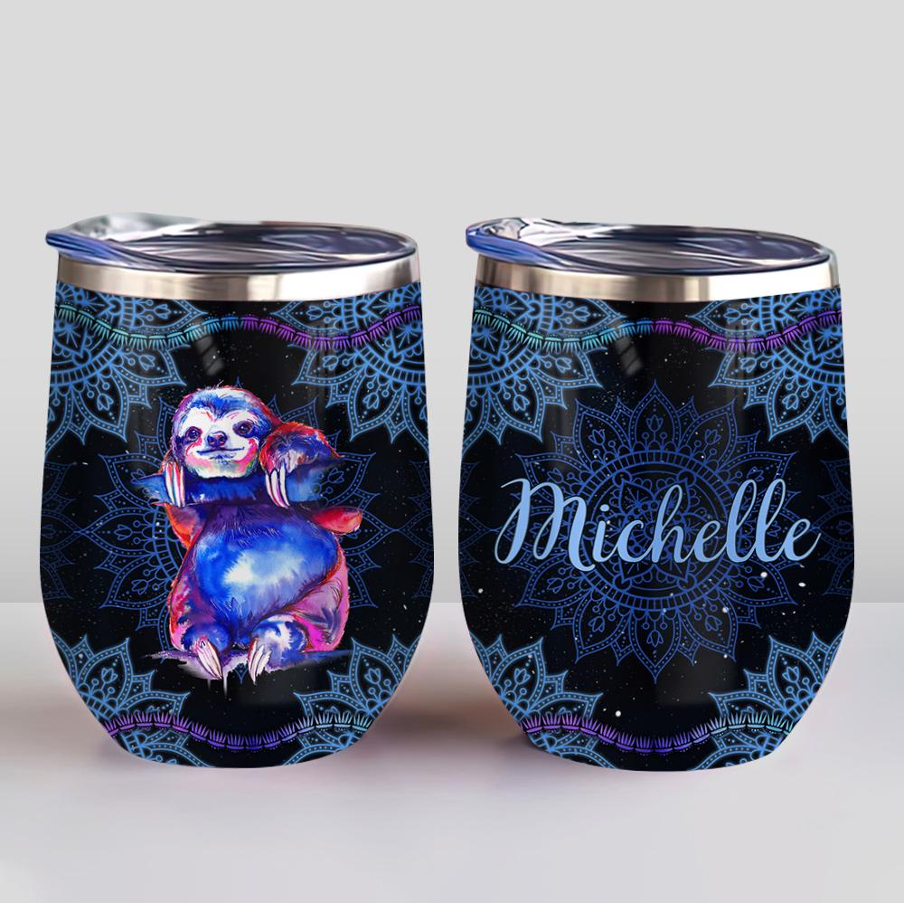 Hologram Sloth Mandala Personalized Wine Tumbler