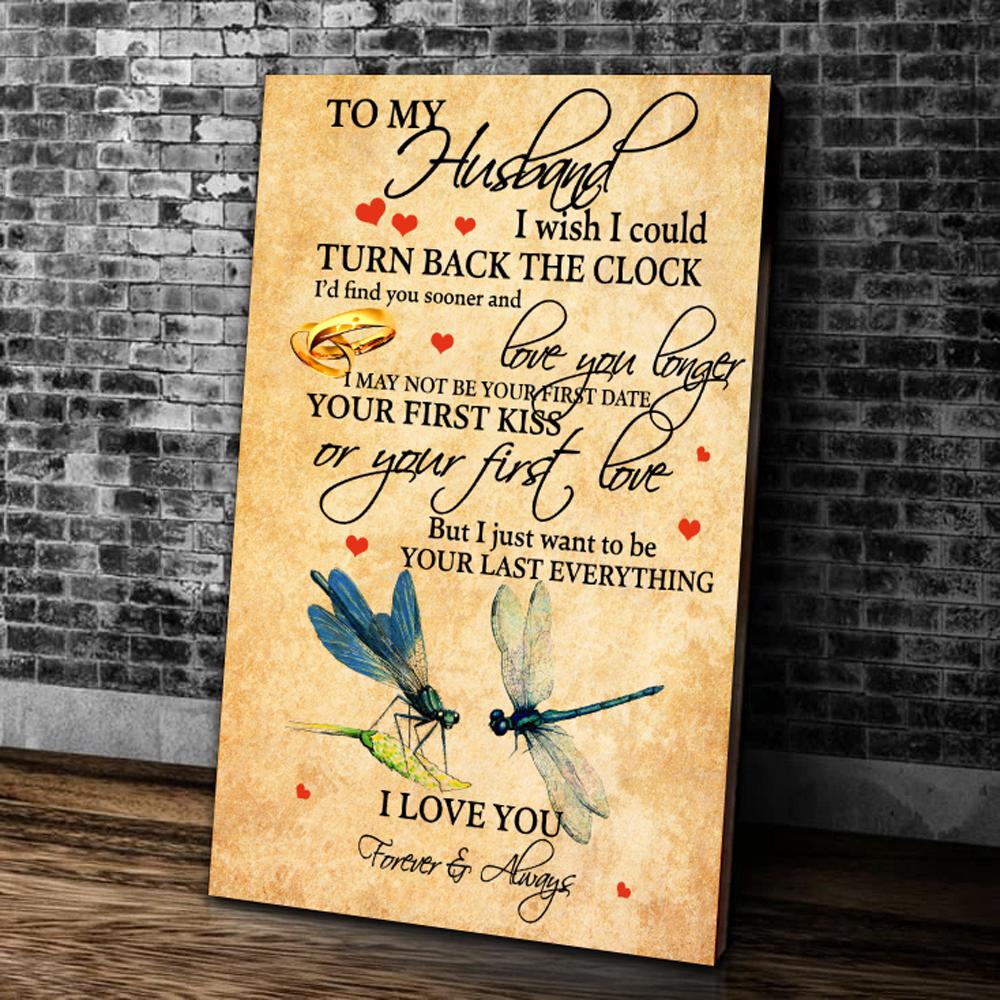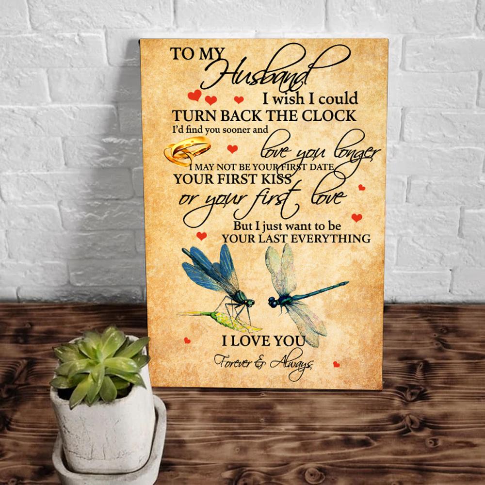Husband Canvas, Gift Ideas For Husband, To My Husband I Wish I Could Turn Back The Clock Dragonflies Canvas Prints Wall Art Decor