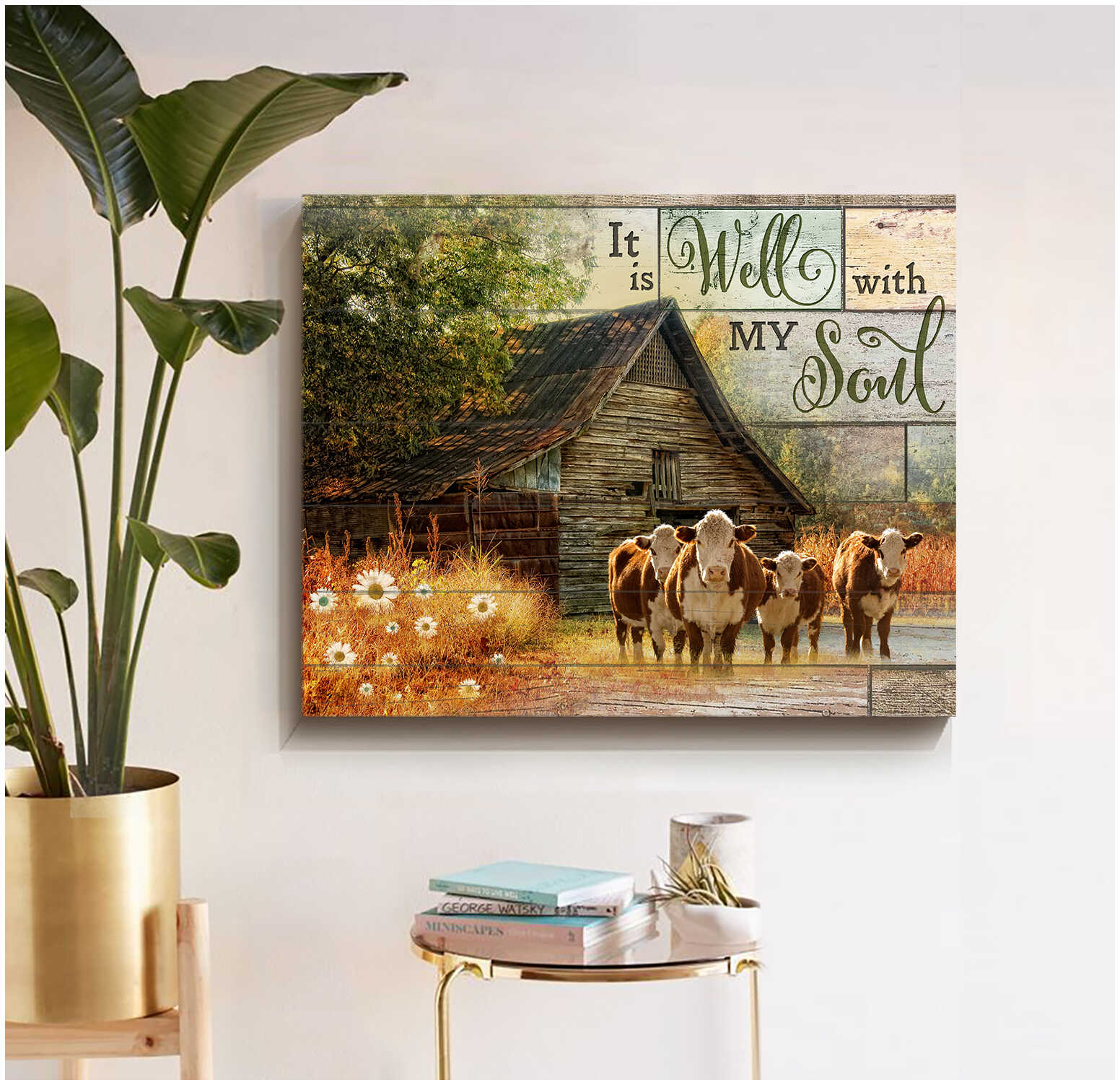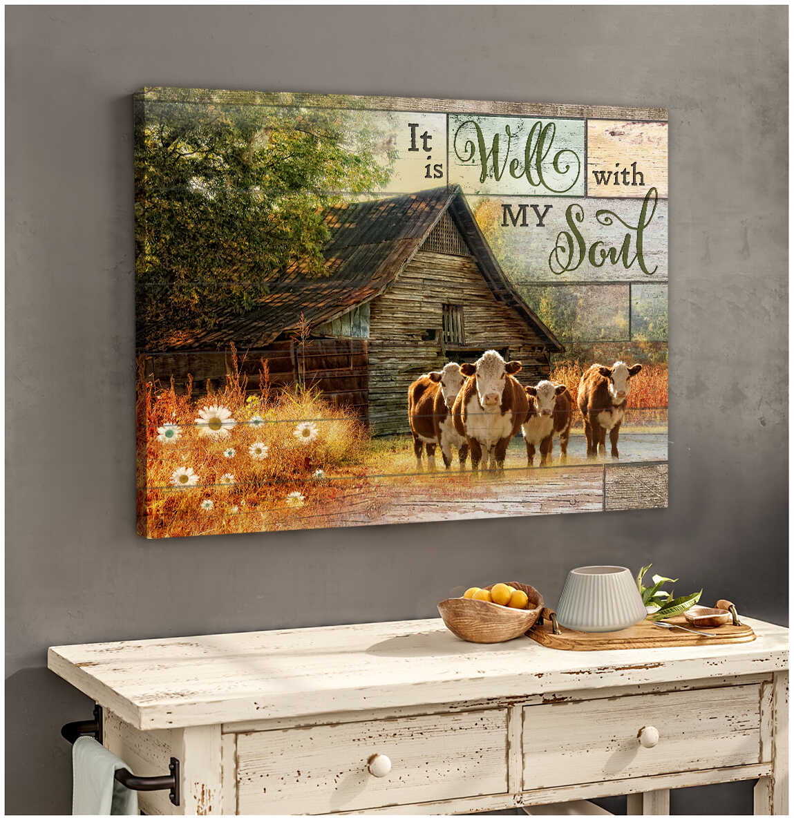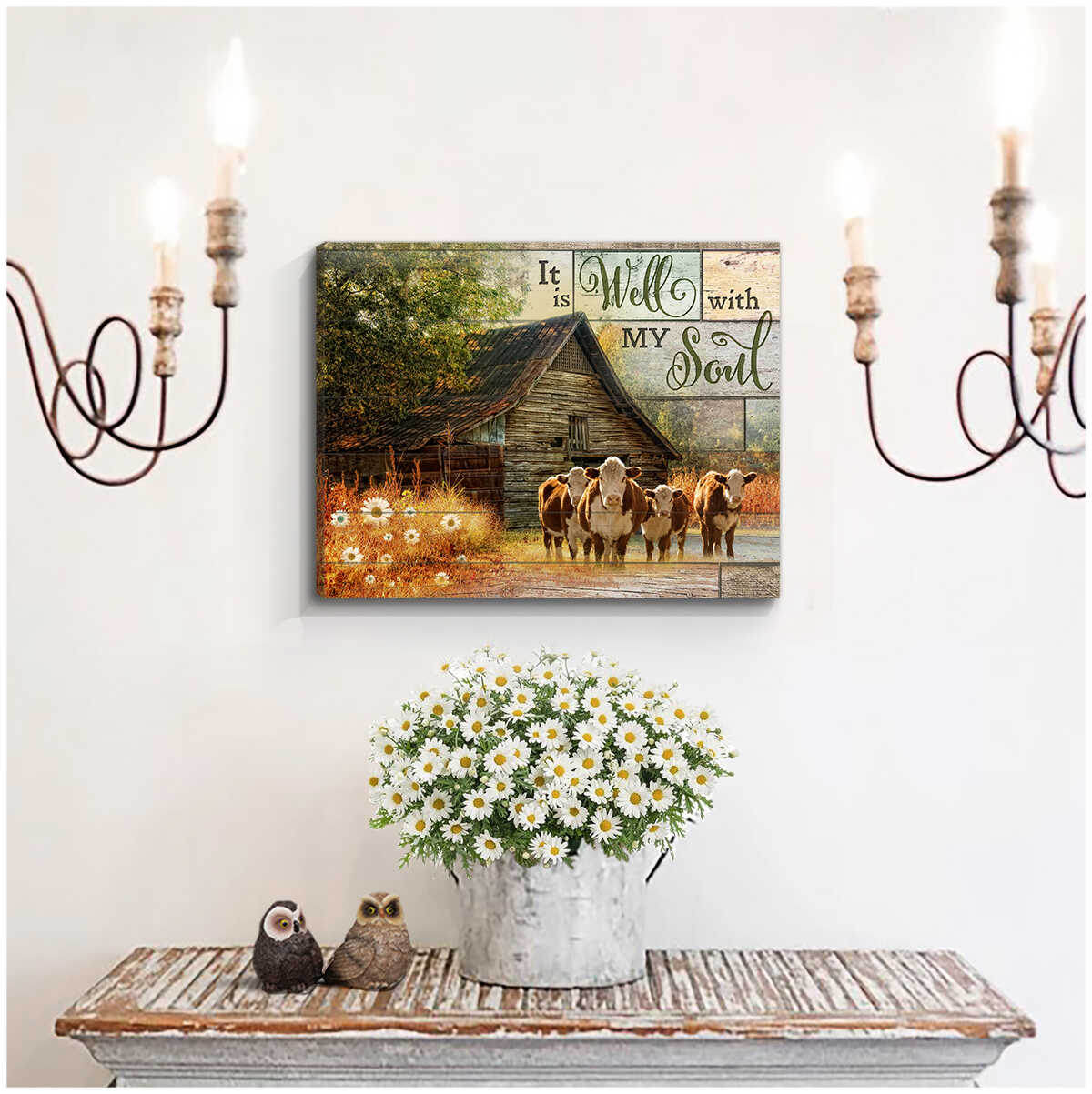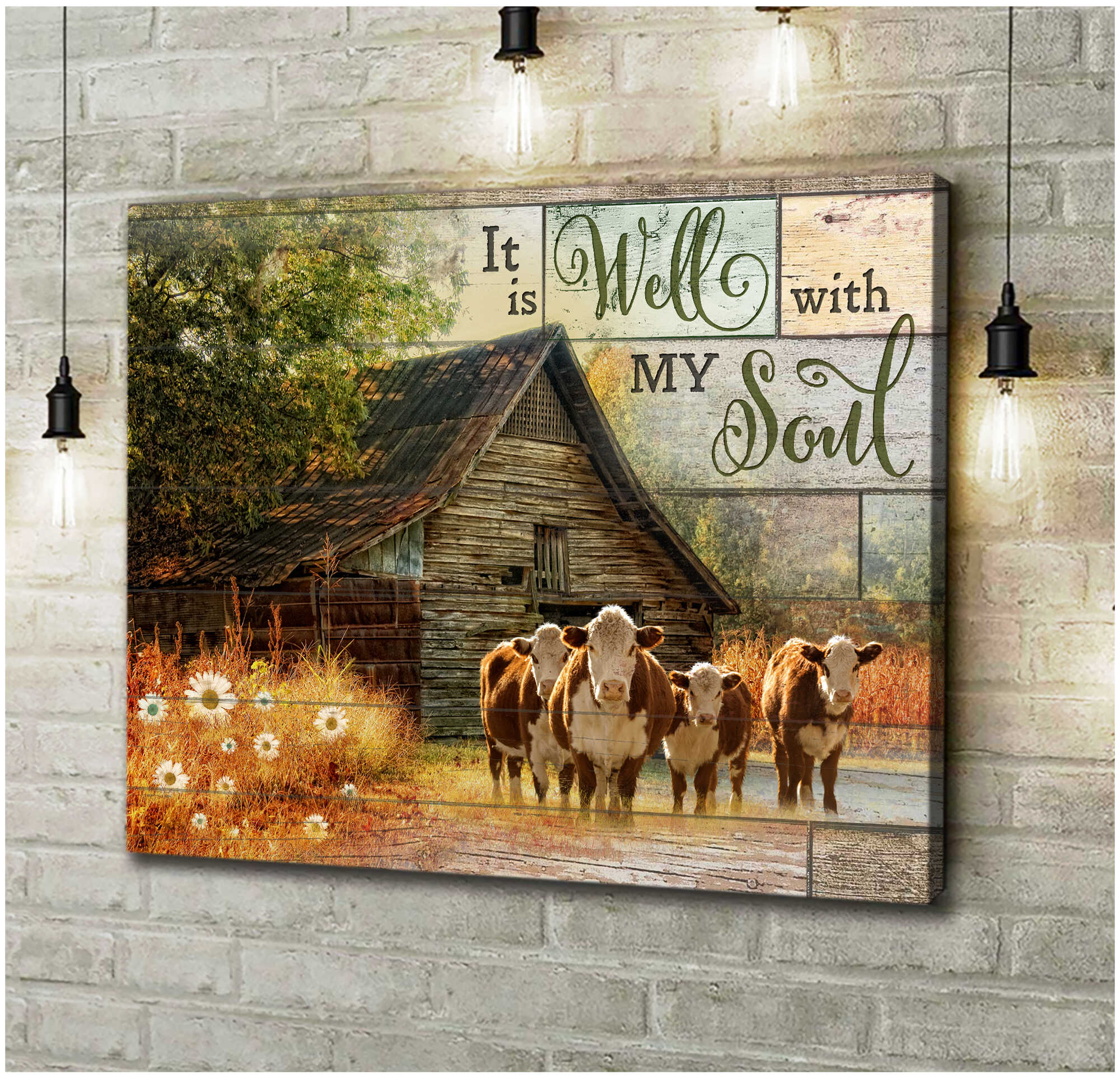 It Is Well With My Soul Farm Hereford Cows Canvas Prints Wall Art Decor