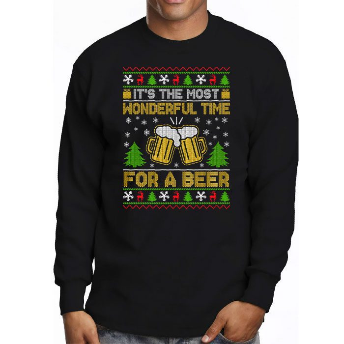 It’s The Most Wonderful Time For A Beer Santa Hat Christmas Longsleeve Tee