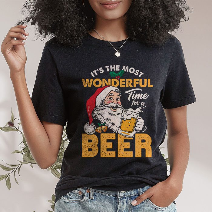 It’s The Most Wonderful Time For A Beer Santa Hat Christmas T-Shirt