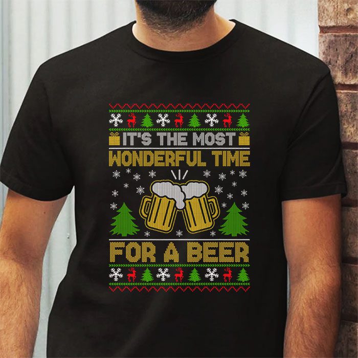 It’s The Most Wonderful Time For A Beer Santa Hat Christmas T-Shirt